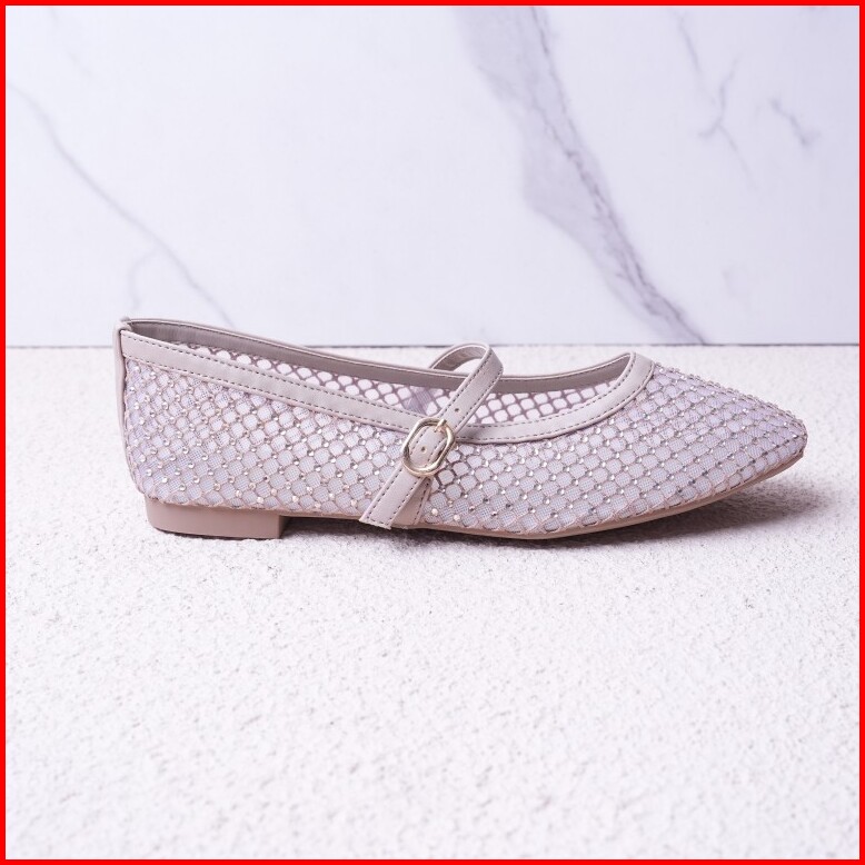 Peter Keiza Flatshoes Wanita Jaring Korean Style Dengan Tali Tengah Zc03-01