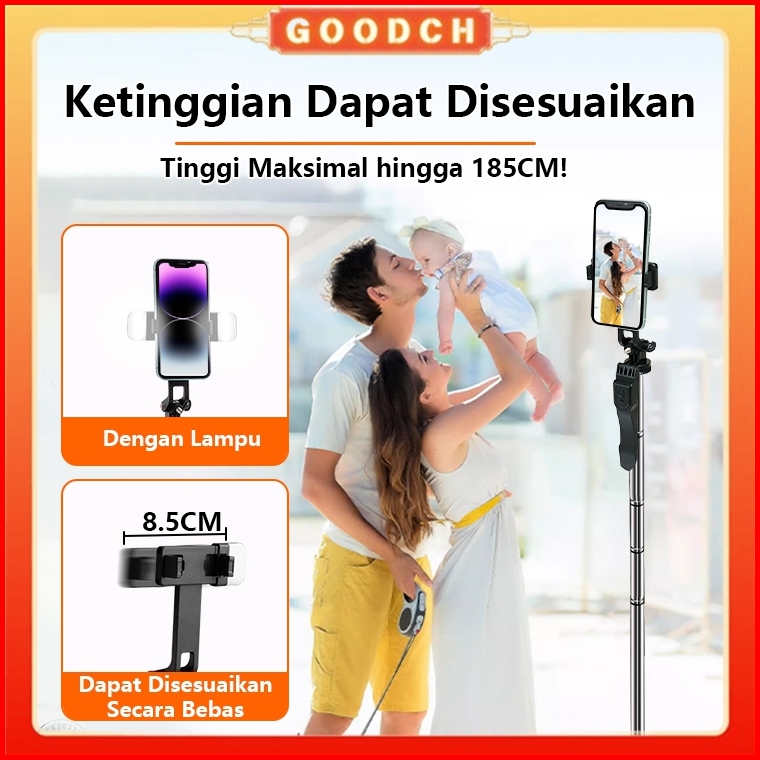 Goodch Tripod Tongsis P185 Bluetooth Selfie Stick Quadpod 360 Adjustable Tinggi 185cm Remote Control Portabel Ringkas An