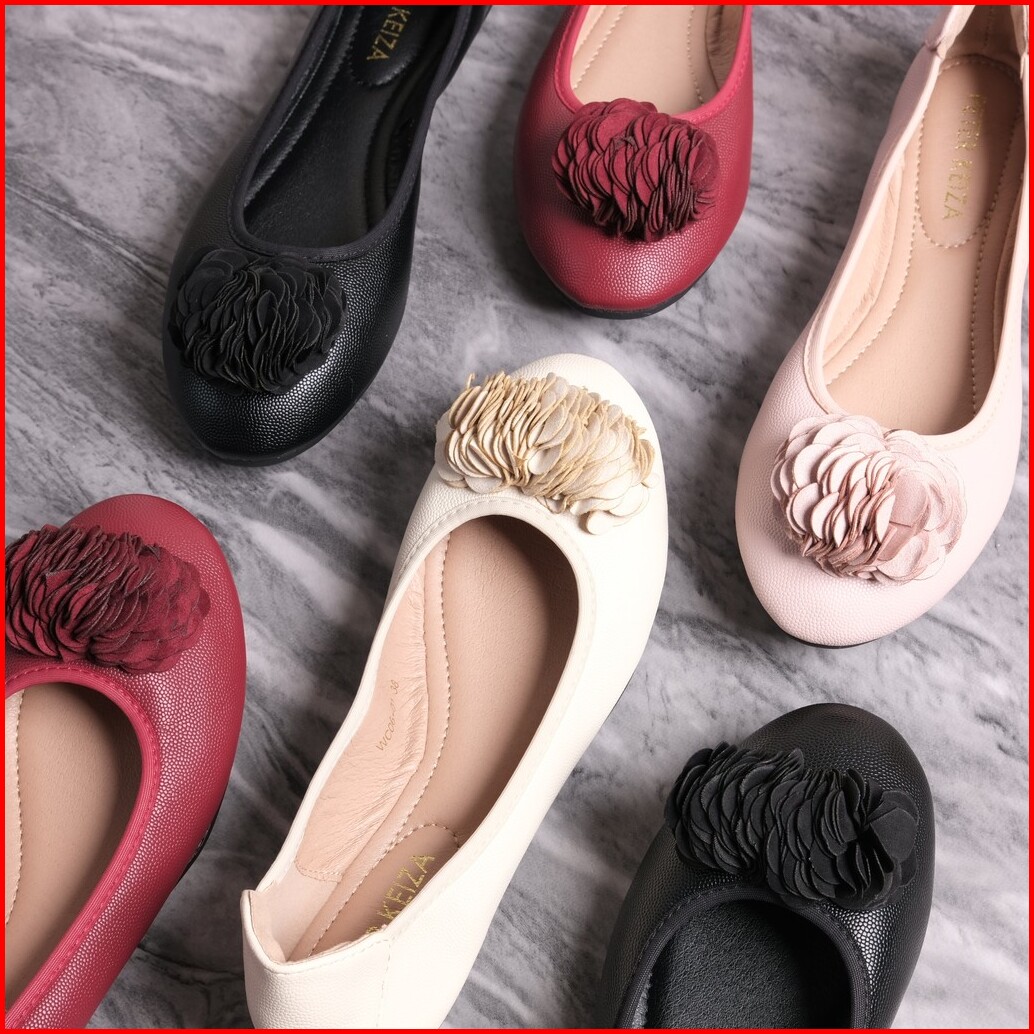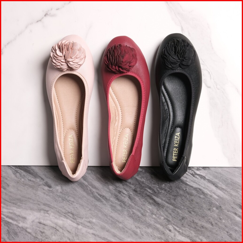 Peter Keiza Sepatu Flatshoes Wanita Matte Dengan Hiasan Bunga Floral Pompom Koleksi Flat Wc06 New Launch