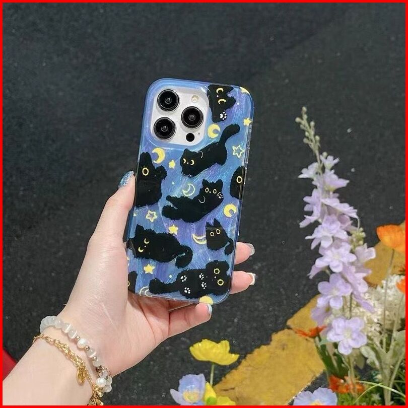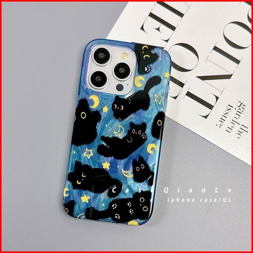 Tpc New Starry Night Kitten- Feline Cute Case Shimmering Brush Case Glossy Silicone Full Cover Full Protection Iphone Ko