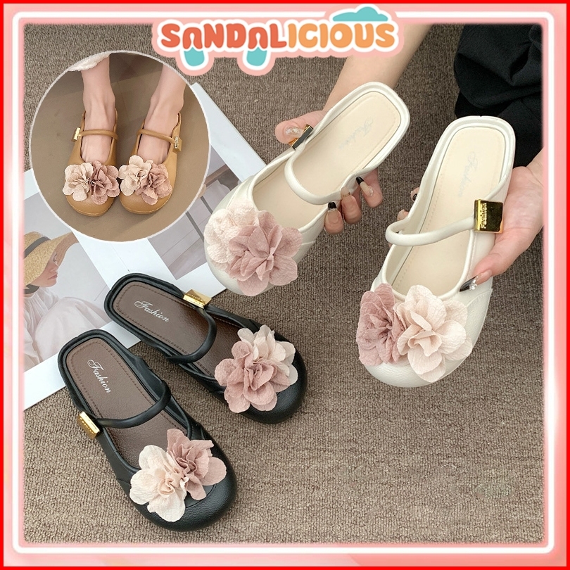 Flat Shoes Wanita Mary Janes Bunga Kekinian Bahan Karet Ringan Sepatu Flat Perempuan Korean Style