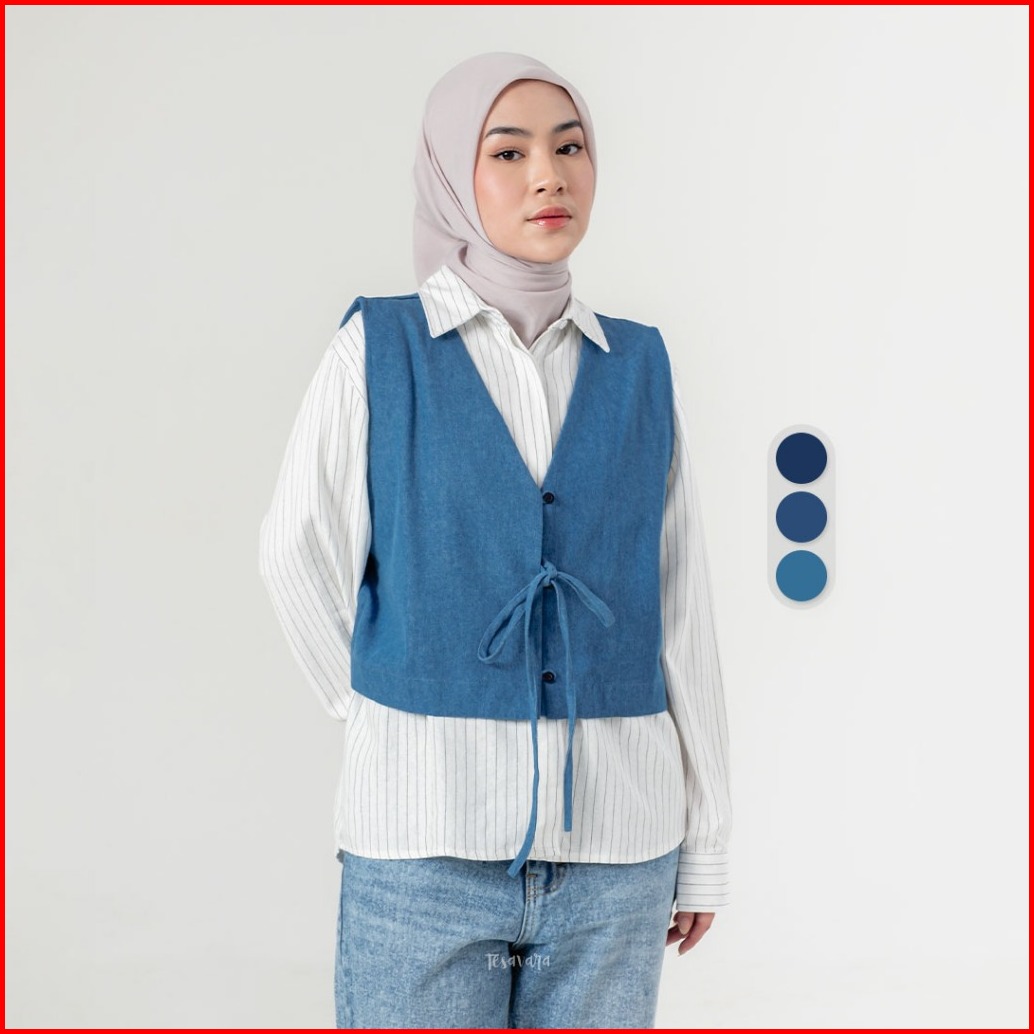 Tesavara Rue Denim Vest Rompi Denim Wanita