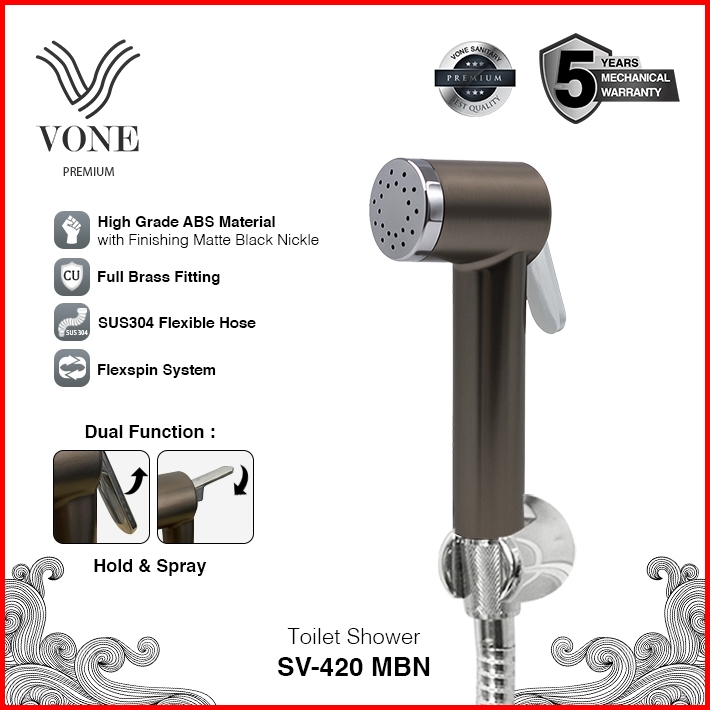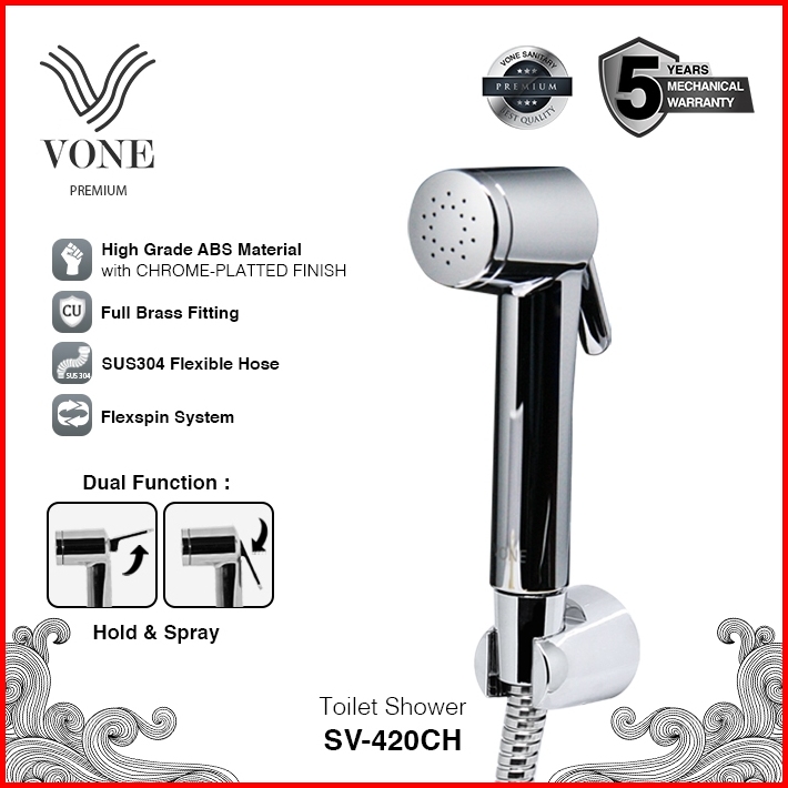 Vone Jet Shower Toilet Bidet Kamar Mandi Chrome Putih Hitam Mbn Sv-420 Vone Exquisite