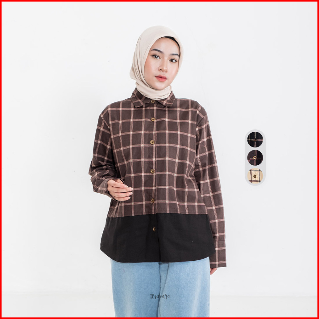 Tesavara Sydney Shirt Kemeja Kotak Double Layer Wanita