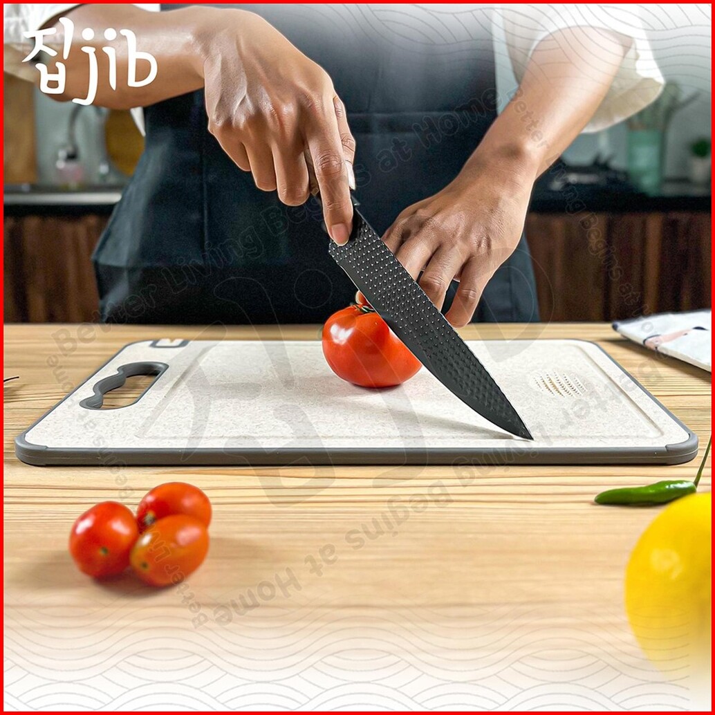 Jib Double Sided Cutting Board Talenan Stainless 2 Sisi Jerami Chopping Board Multifungsi Dengan Pemarut Dan Pengasah