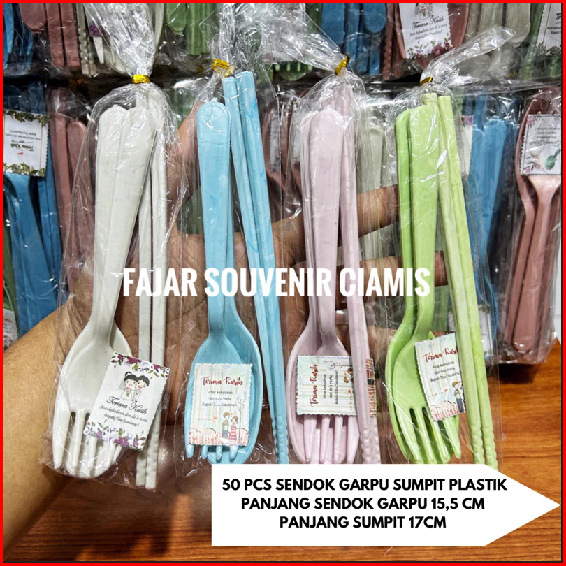 Isi 100 Pcs Souvenir Sendok Garpu Sumpit Kemas Plastik Gratis Kartu Ucapan Terima Kasih