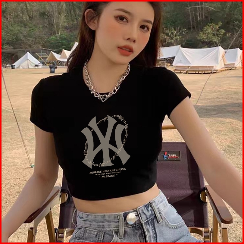 Ship Locally T-shirt Crop Top Lengan Pendek Kaos Wanita Crop Top Korea Mlb Outlets Kaos Crop Wanita Kekinian Baju Atasan