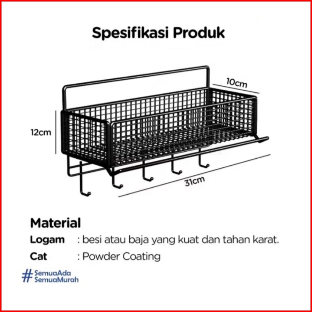 Rak Bumbu Dapur Hook Tempel Dinding Rak Serba Guna Free Perekat Uk Besar 35