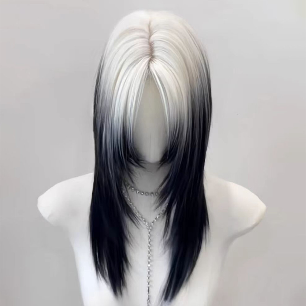 Wolf Tail Wig Rambut Panjang Pria Rambut Palsu Wanita Full Kepala Wig Wolfcut Wig Cowok Wig Daily Wig Tanpa Poni Wig 2 W