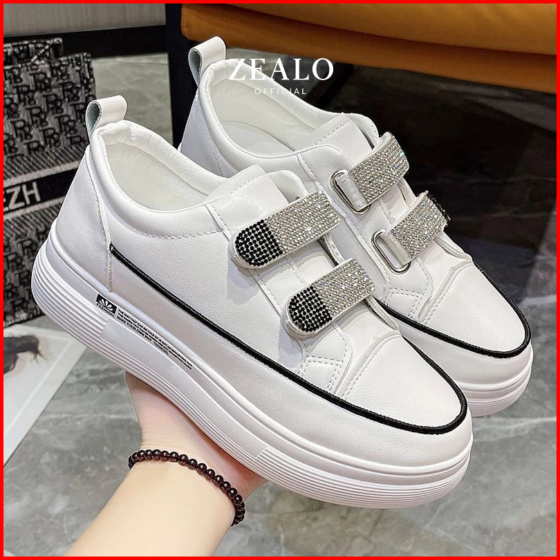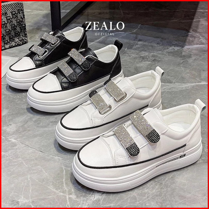 Zealo.shoes 245 Sneakers Wanita Platform Bling Perekat Kristal Sepatu Casual Stylish Tebal Sol Tinggi