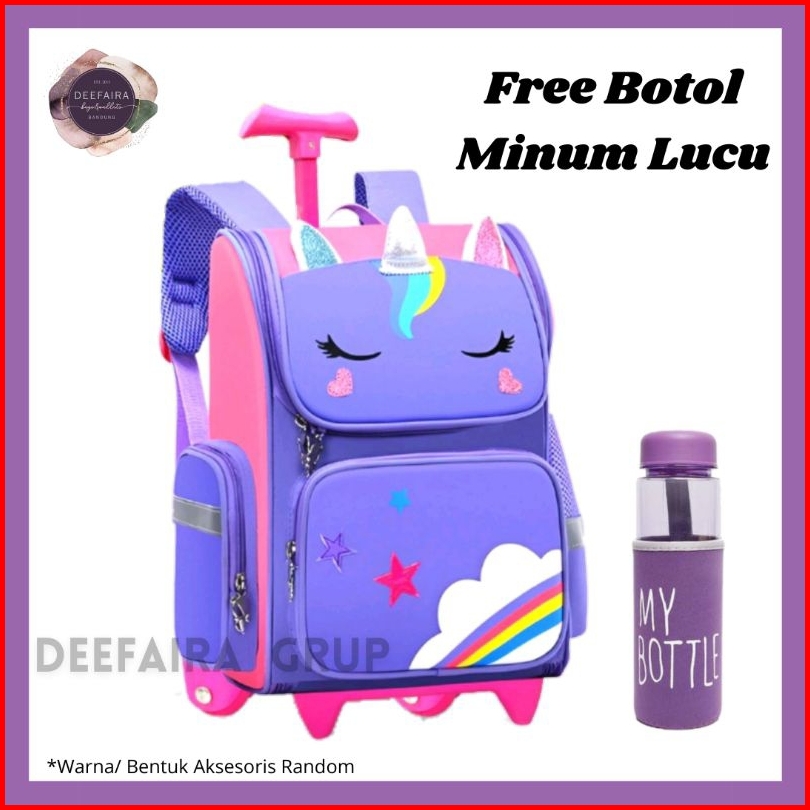Tas Ransel Troli Koper Dorong Satu Paket Motif Glitter Uniq0rrn Kuda Poni Tanduk Awan Pelangi Love Ransel Troli Anak Sek