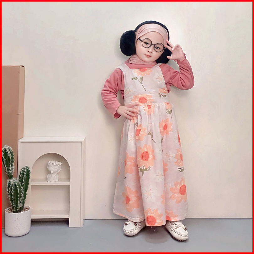 Hallybaba Kids - Setelan Overall Anak Tanggung 1-10th Overall Gamis Sakura Anak Setelan Gamis Rayon Anak