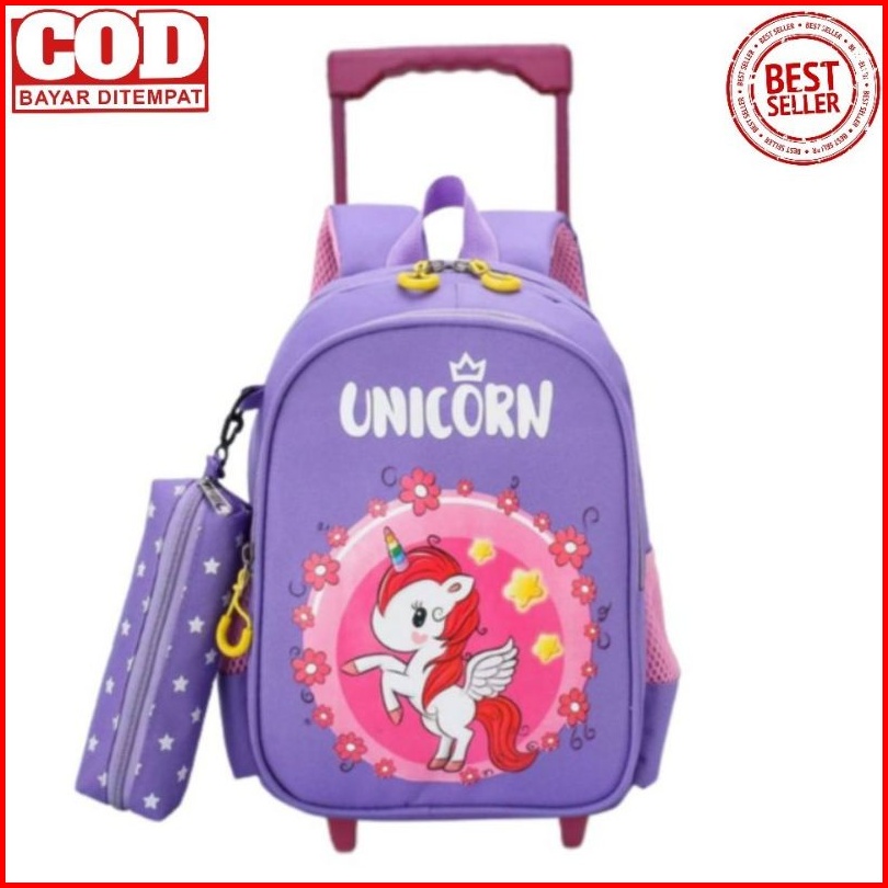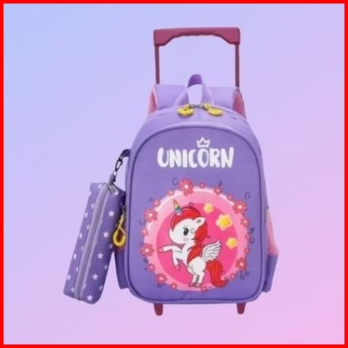 Tas Troli Anak Perempuan - Tas Dorong Motif Unicorn - Tas Sekolah Anak Sd Tk - Tas Roda Anak Unicorn