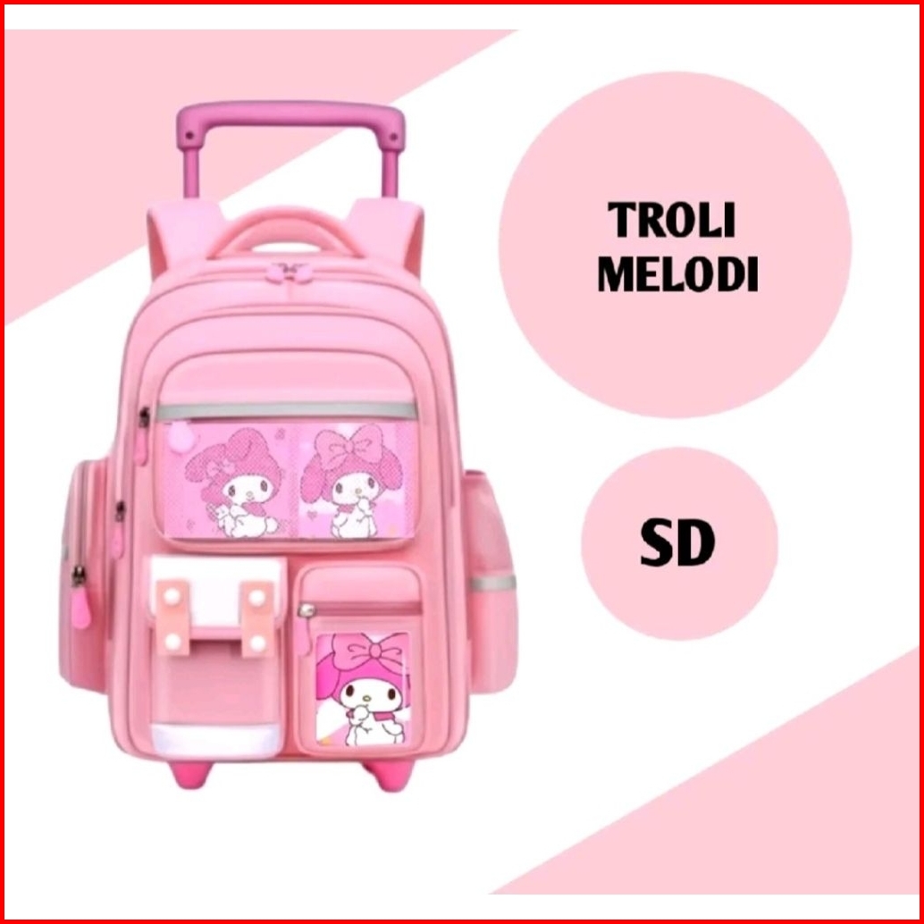 Troli Anak Sekolah Sd Karakter Sanrio Kuromi Melodi Cinamorol Tas Dorong Anak Fashion Ransel Tas Sd Terbaru