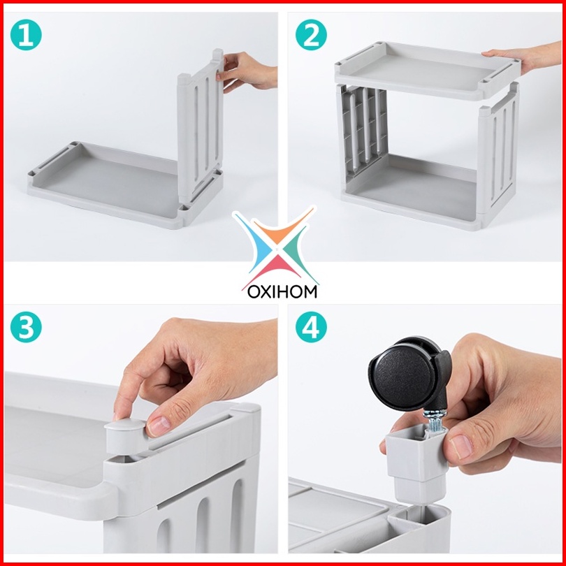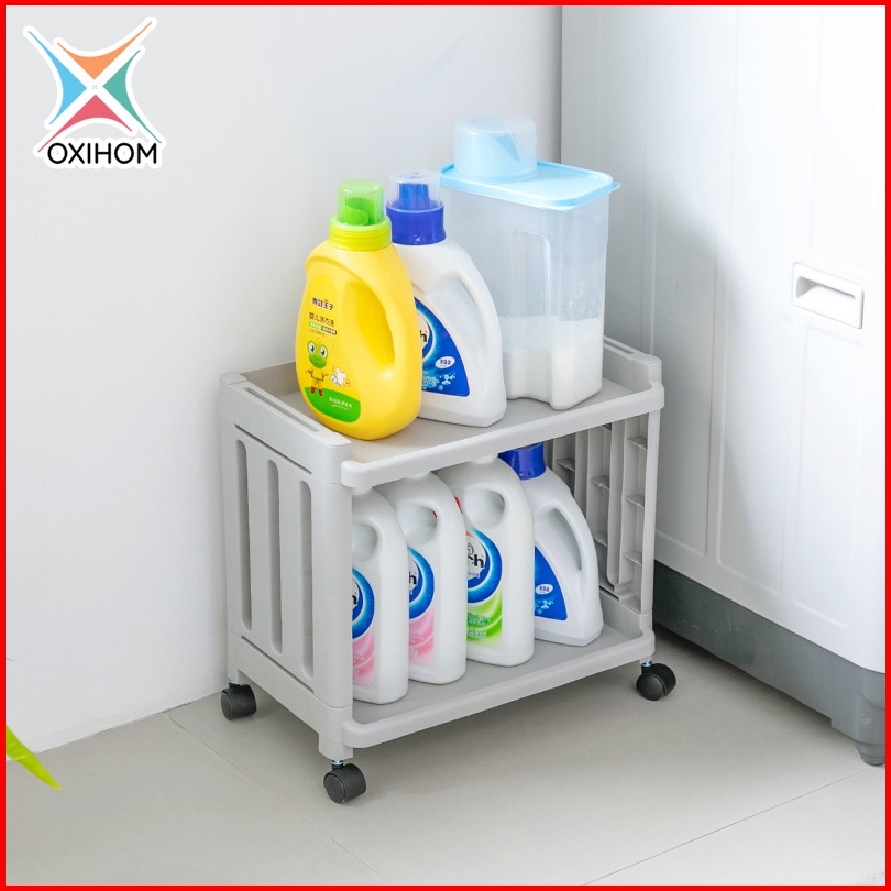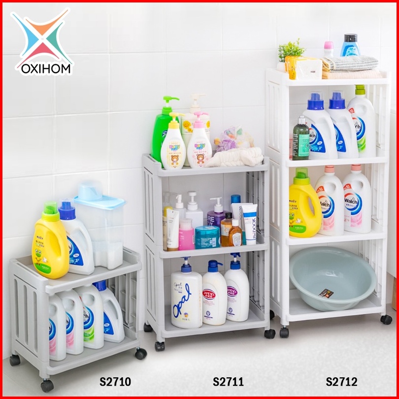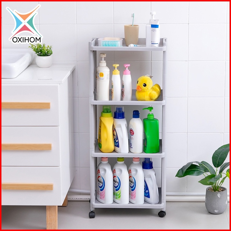 Oxihom Rak Dapur Susun Plastik Rak Tempat Penyimpanan Kamar Mandi Roda