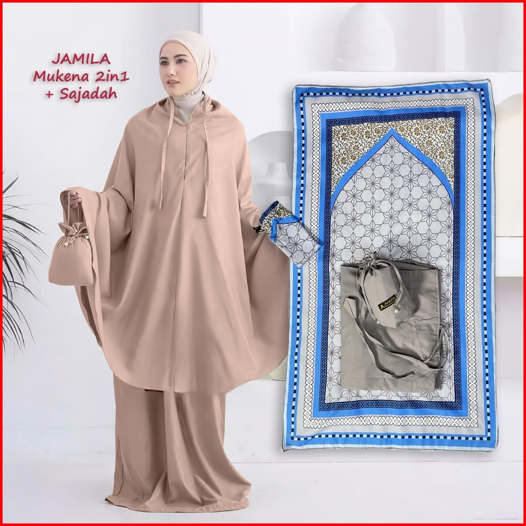 Full Set Mukena Sajadah Jamila Dewasa Travel Series Katun Polos Renda Arbifa