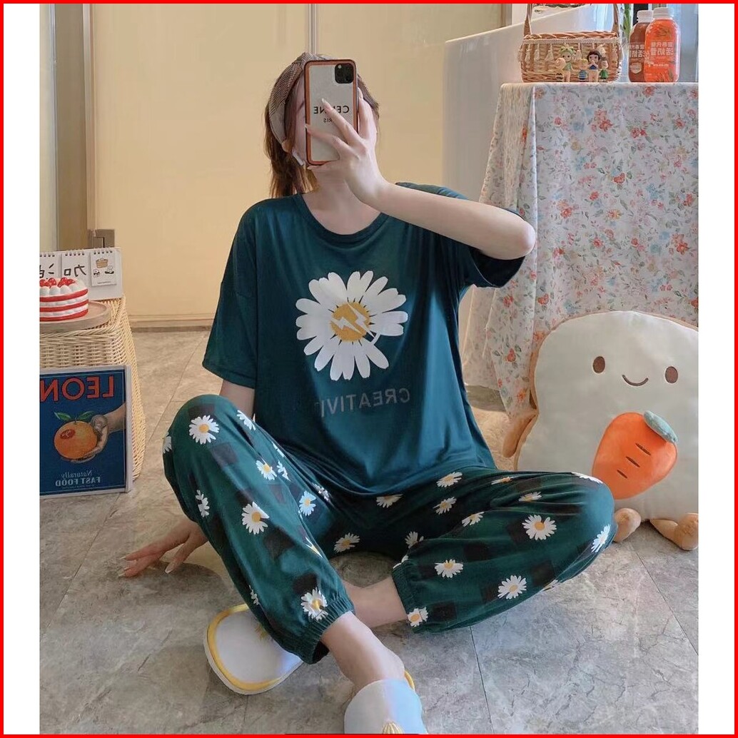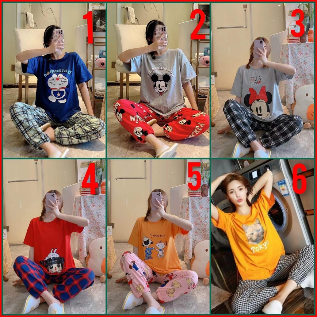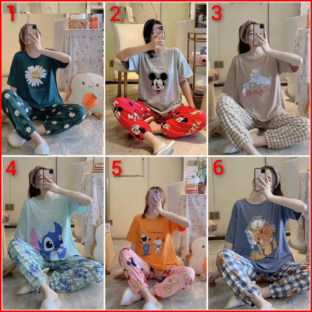 Baju Tidur Piyama Lengan Pendek Celana Panjang Model Joger Bahan Spandek Import