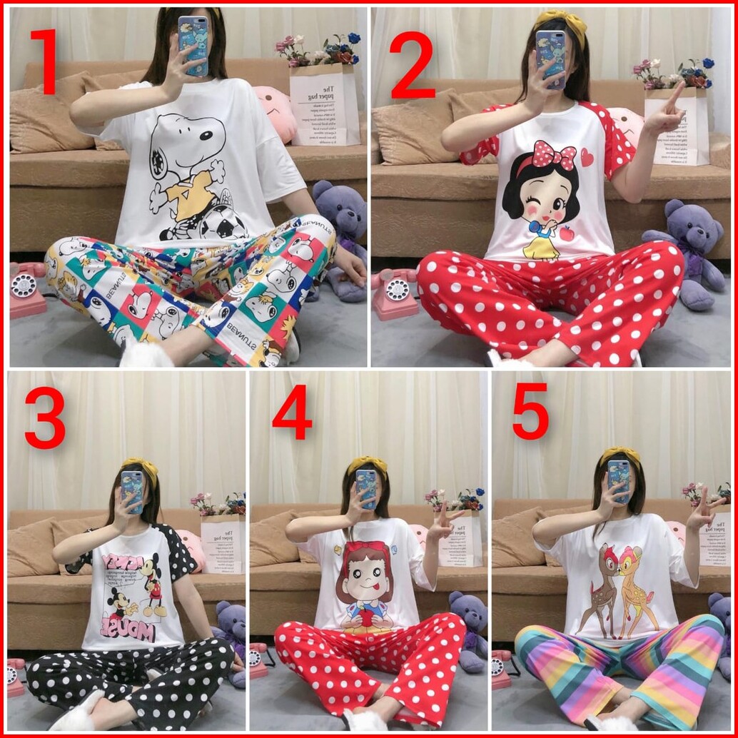 Baju Tidur Piyama Lengan Pendek Celana Panjang Bahan Spandek Import Cpspandek068