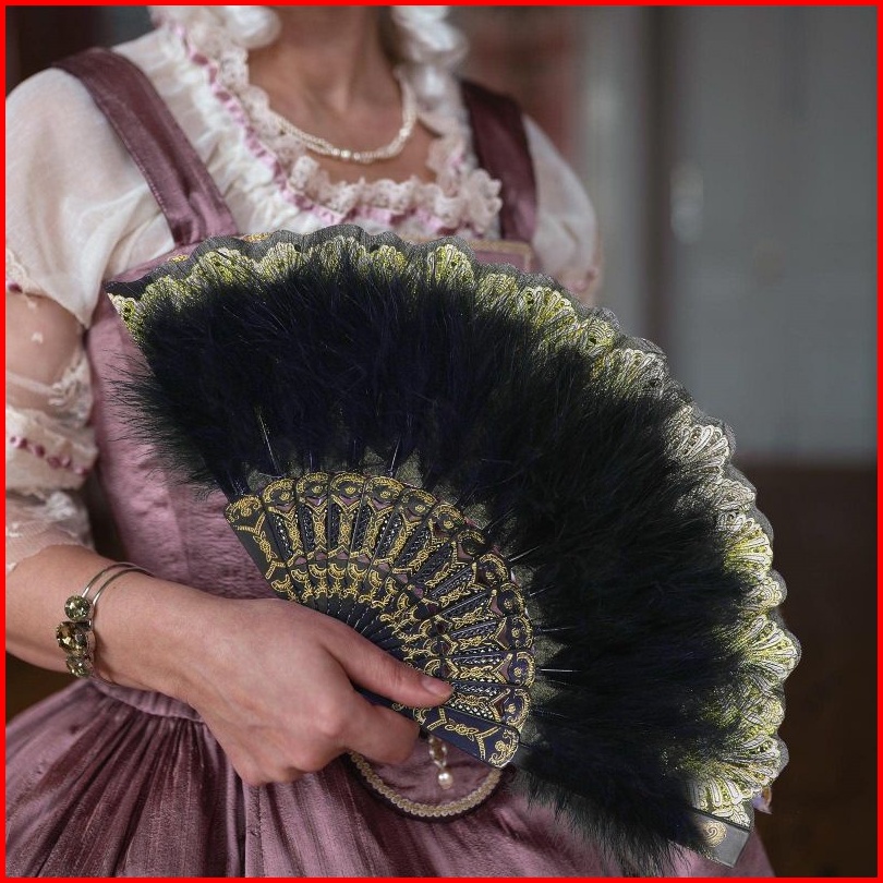 1 Kipas Tangan Lipat Bulu Gaya Gothic Lolita Kipas Lipat Bahan Lace Bulu Untuk Properti Foto