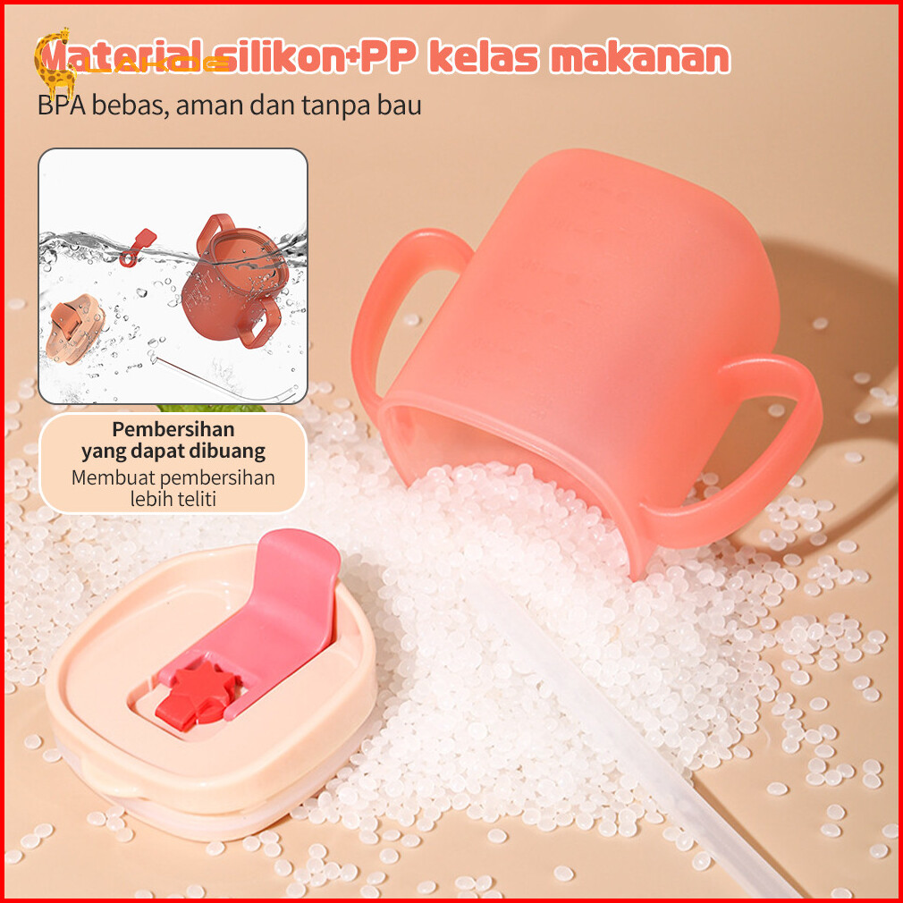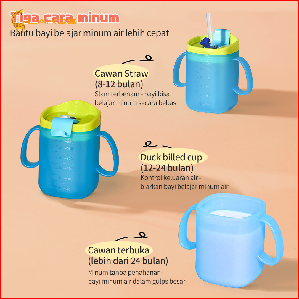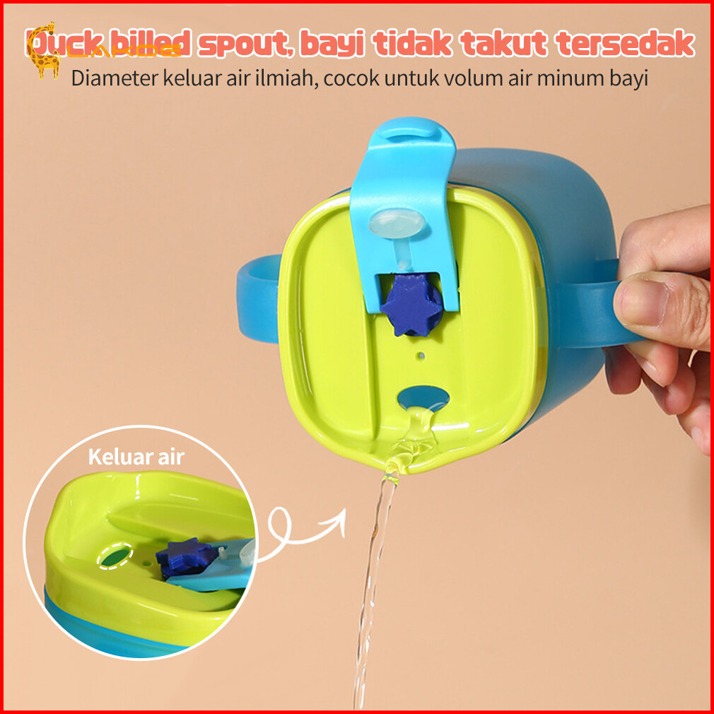 Lakoeofficialmall 2in1 Straw Training Duckbill Cup Gelas Minum Sedotan Bayi 280ml Sippy Cup Bpa Free