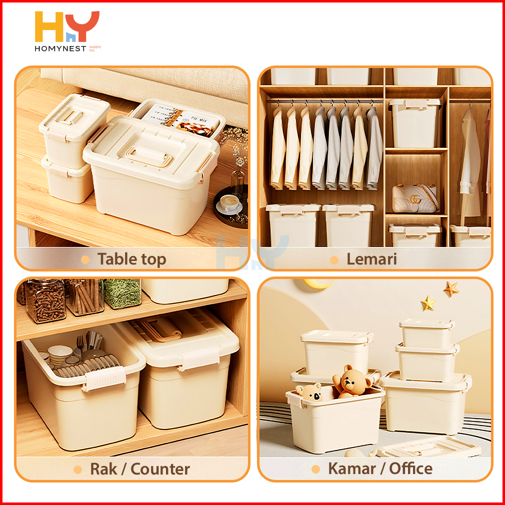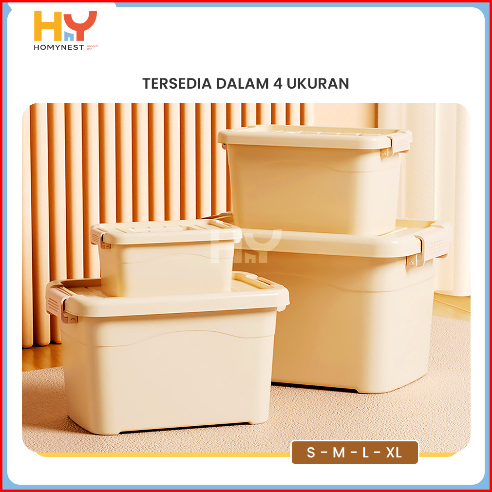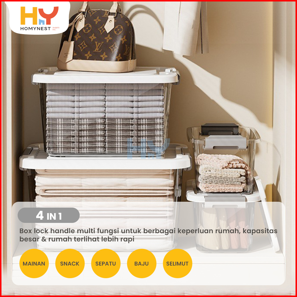 Homynest Box Container Plastik Jumbo Kotak Penyimpanan Serbaguna Double Lock Storage Organizer Set 4 Pcs