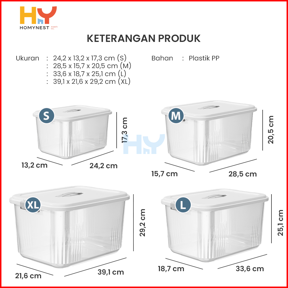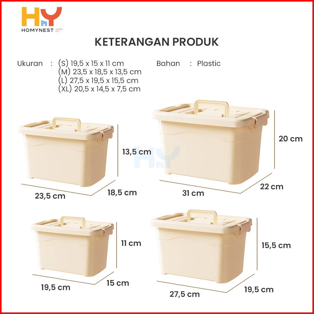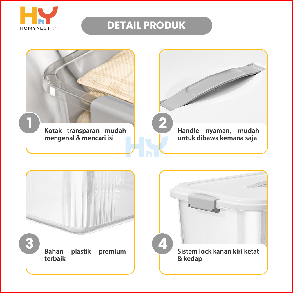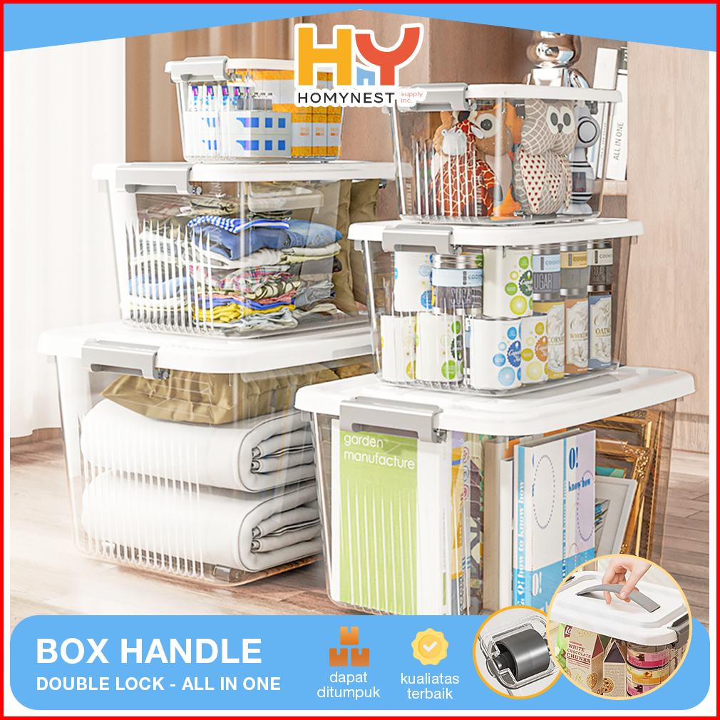 Homynest Box Container Plastik Jumbo Kotak Penyimpanan Serbaguna Double Lock Storage Organizer Set 4 Pcs