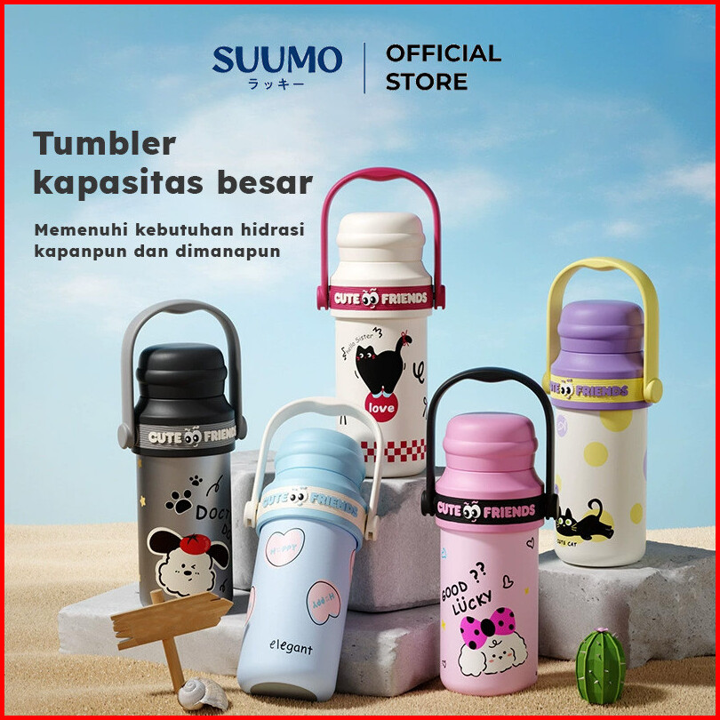 Suumo Tumbler Termos Sedotan Botol Air Cetak 3d Stainless Steel 650ml Kualitas Premium
