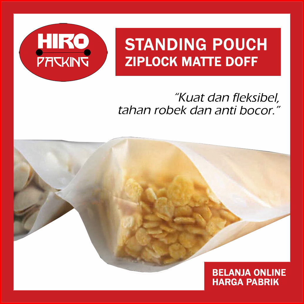 Plastik Ziplock Standing Pouch Kemasan Cemilan Snack Kopi Keripik Matte Doff Transparan