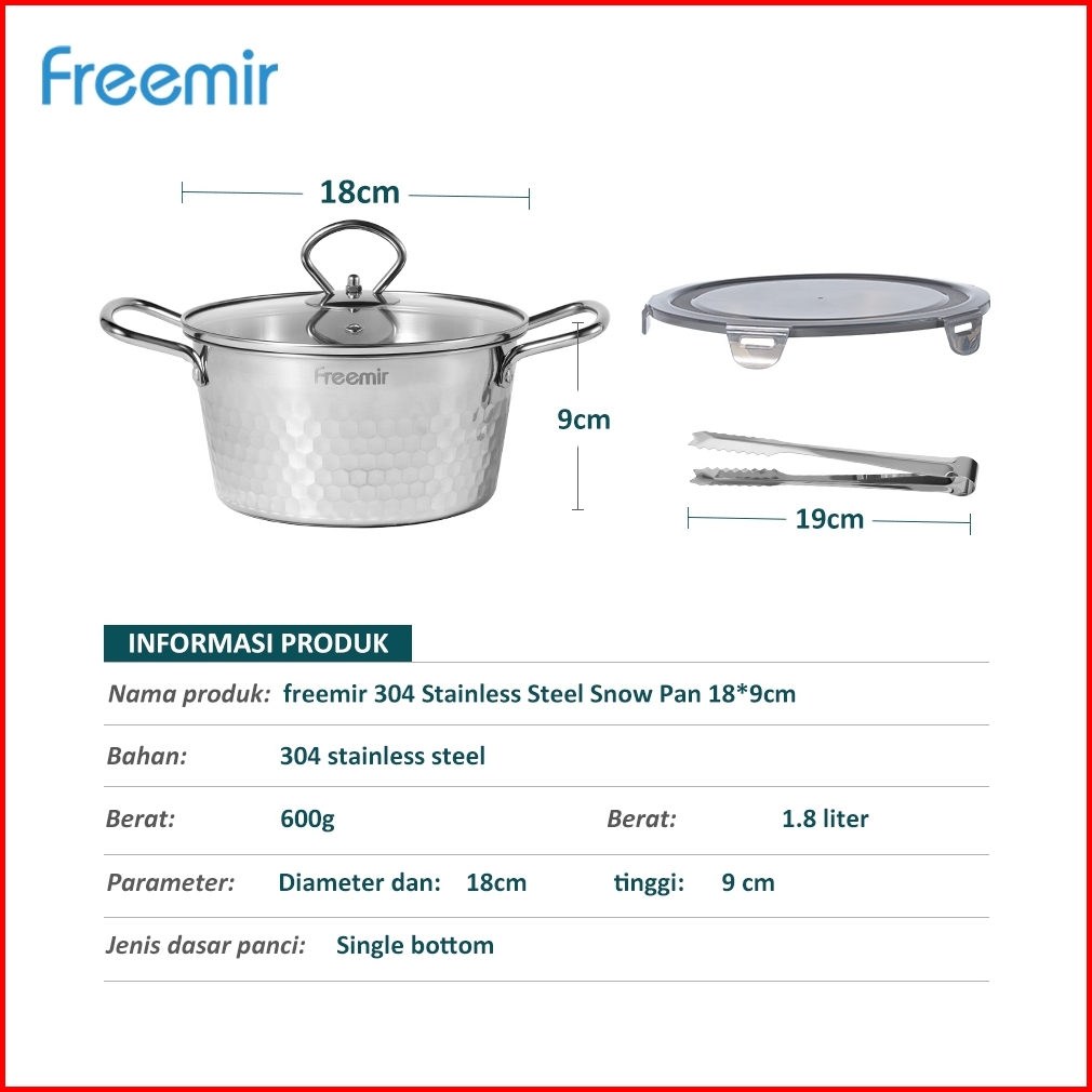 Freemir Electric Snow Pan Buy 1 Get 1 Panci 18cm Stainless Steel Sus 304 Food Grade Tutup Kaca