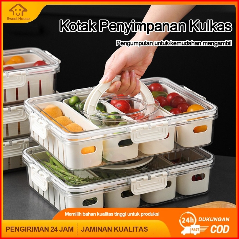 Kotak Penyimpanan Makanan Sayuran Kulkas Kotak Kulkas Dengan Pegangan Dan Sayuran Dapur Segar Berlapis Tertutup Beku Yan