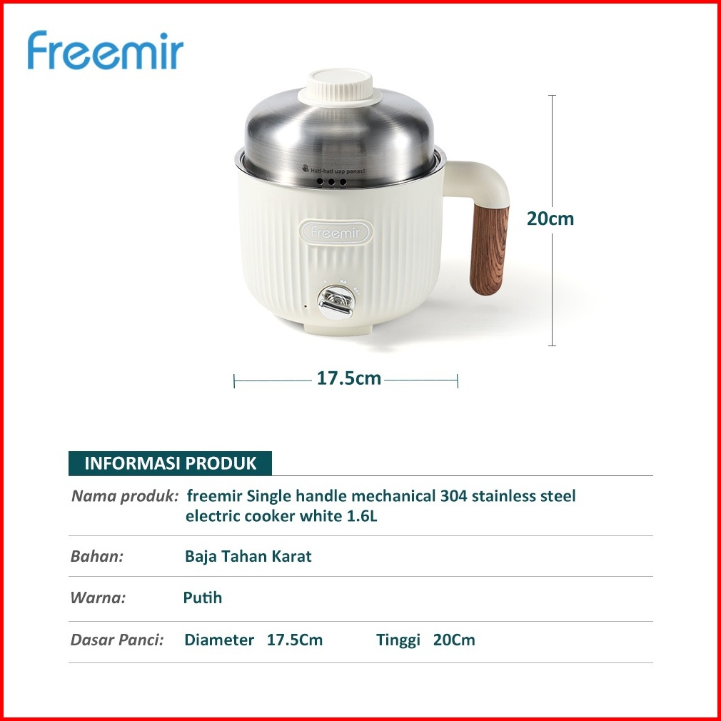 Freemir Panci Listrik Premium Putih 1.6l Sus 304 Low Watt 300w Tersertifikasi K3l
