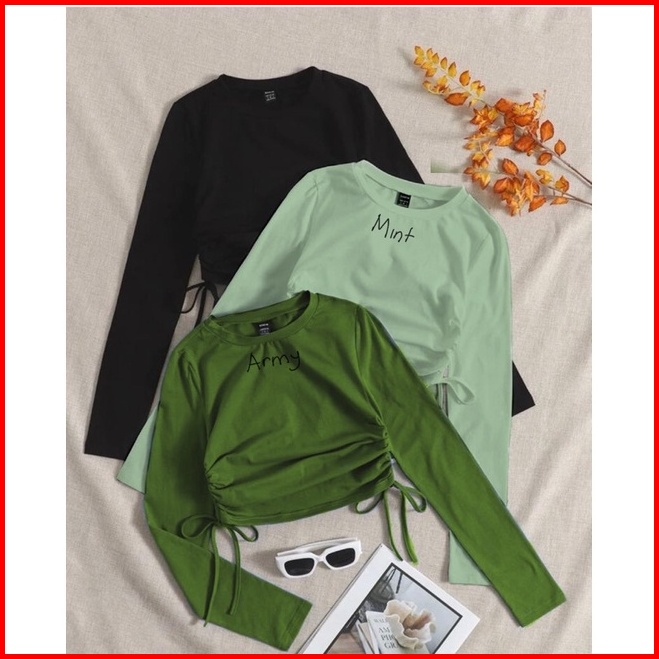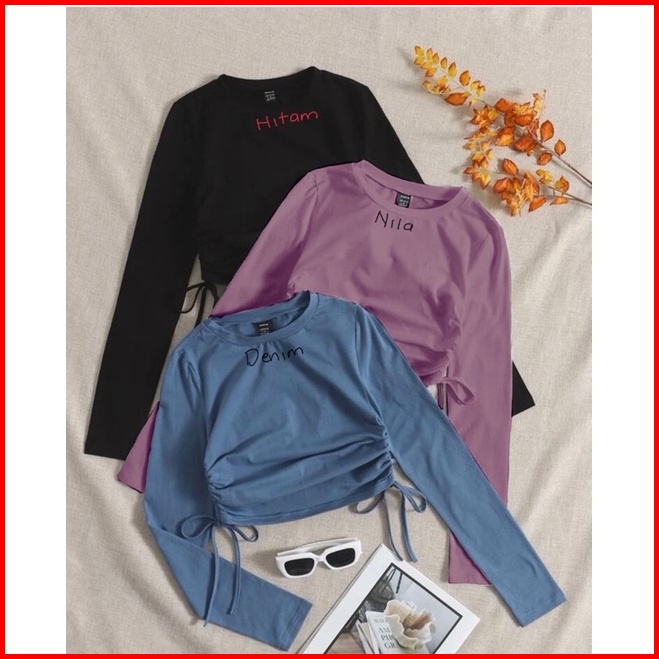 Blouse Korea Crop Globosa Bahan Waffle Uniqlo