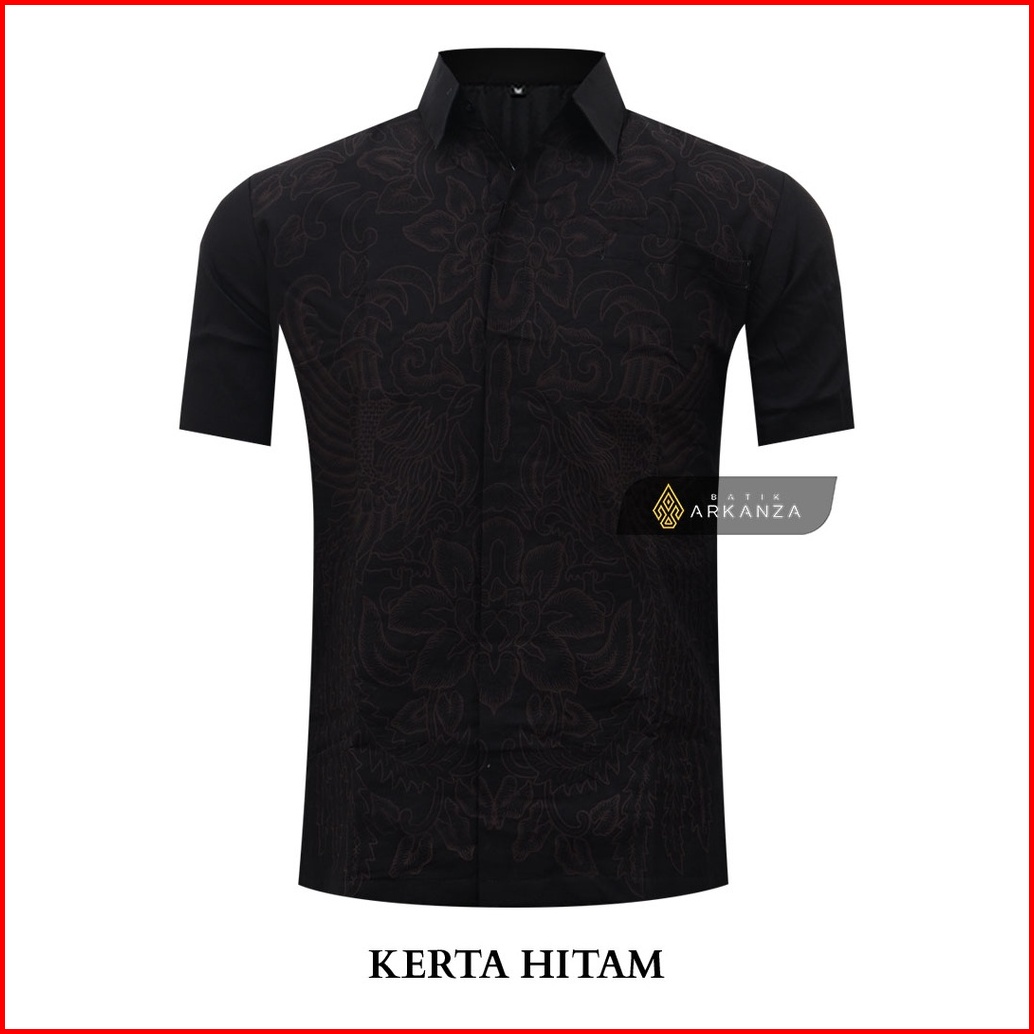 Atasan Kemeja Batik Arkanza Store Motif Kerta Hitam Hem Atasan Kemeja Baju Batik Pria Cowok Laki Laki Slimfit Full Lapis