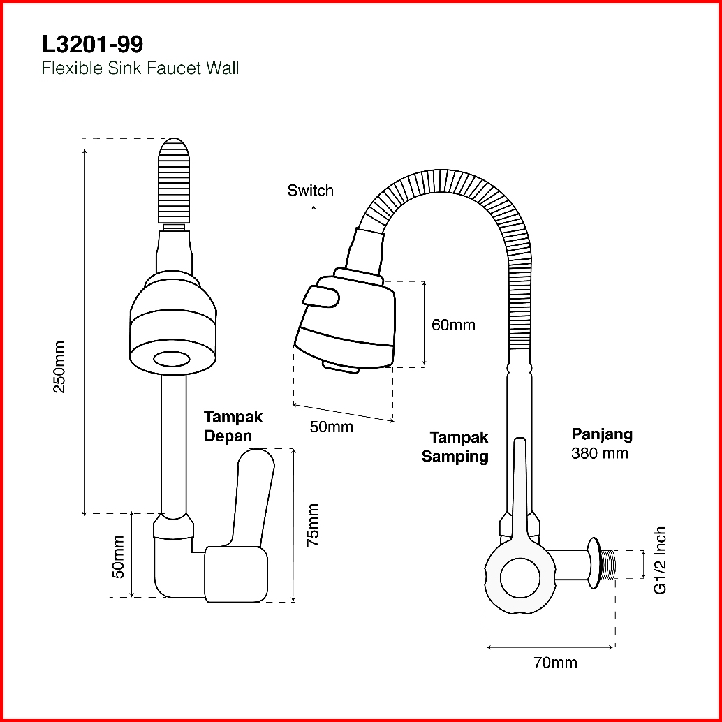Vone Kran Cuci Piring Dapur Angsa Tembok Fleksibel Vone Lite