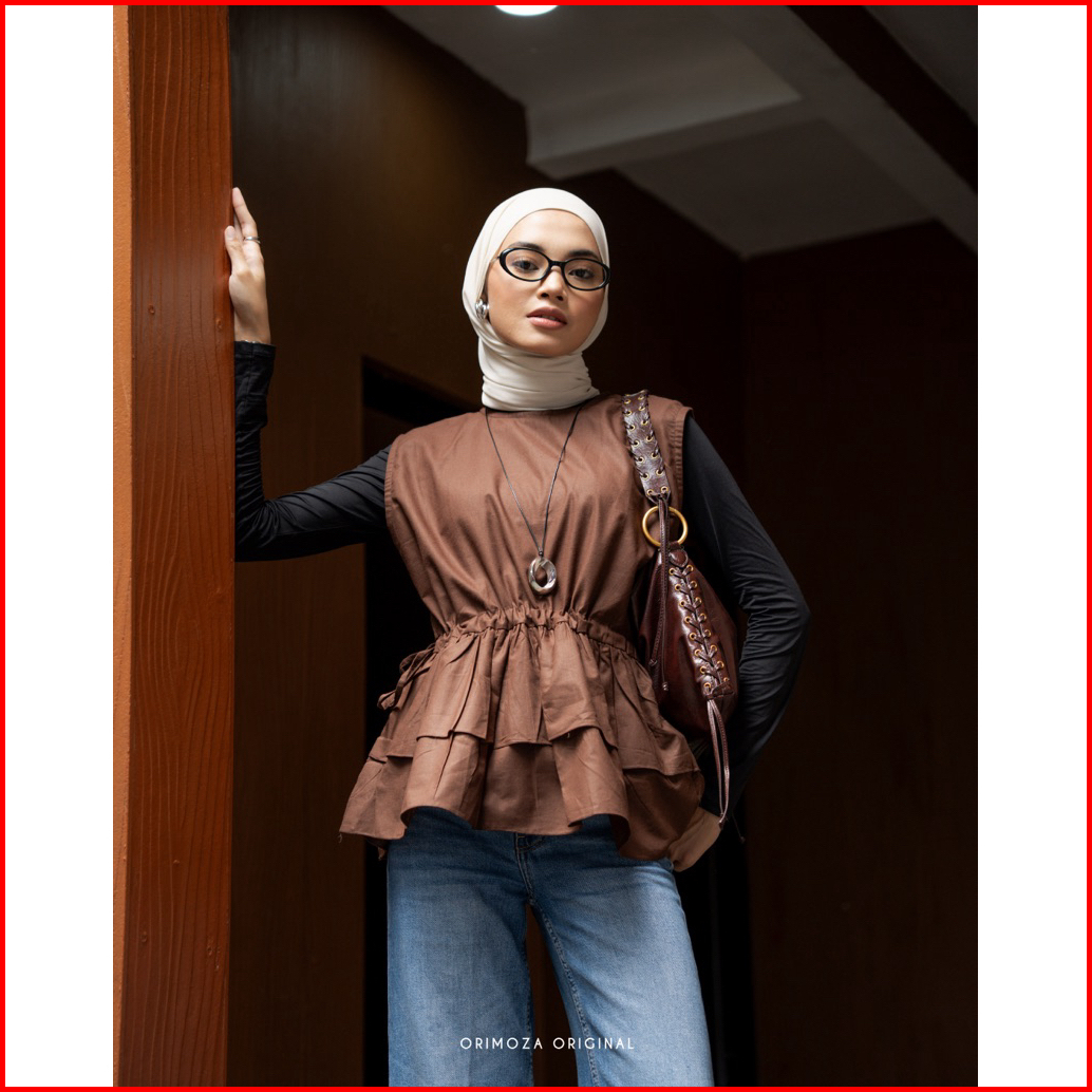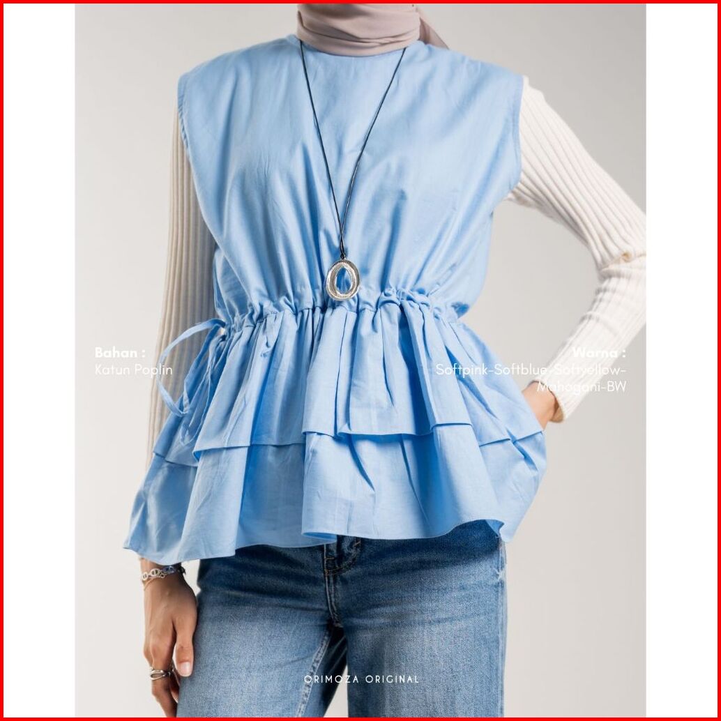 Orimoza Ribbon Inner Sleeves Layered Top Katun Poplin Premium