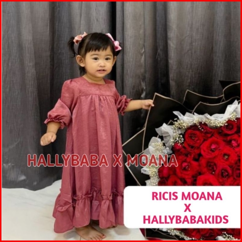 Hallybaba Kids X Ricis Moana Gamis Anak Perempuan 1-10th Bahan Silk Baju Muslim Anak Gaun Pesta Anak