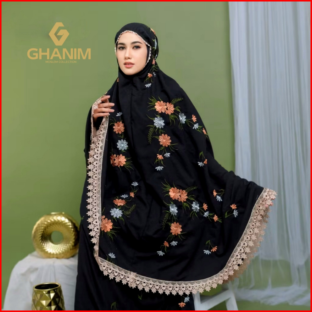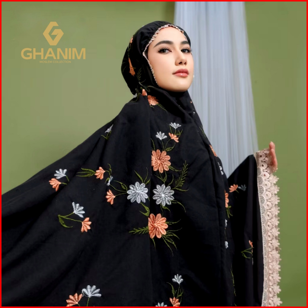 Ghanim - Mukena Dewasa Katun Premium Bordir Bunga Starla Renda Mewah