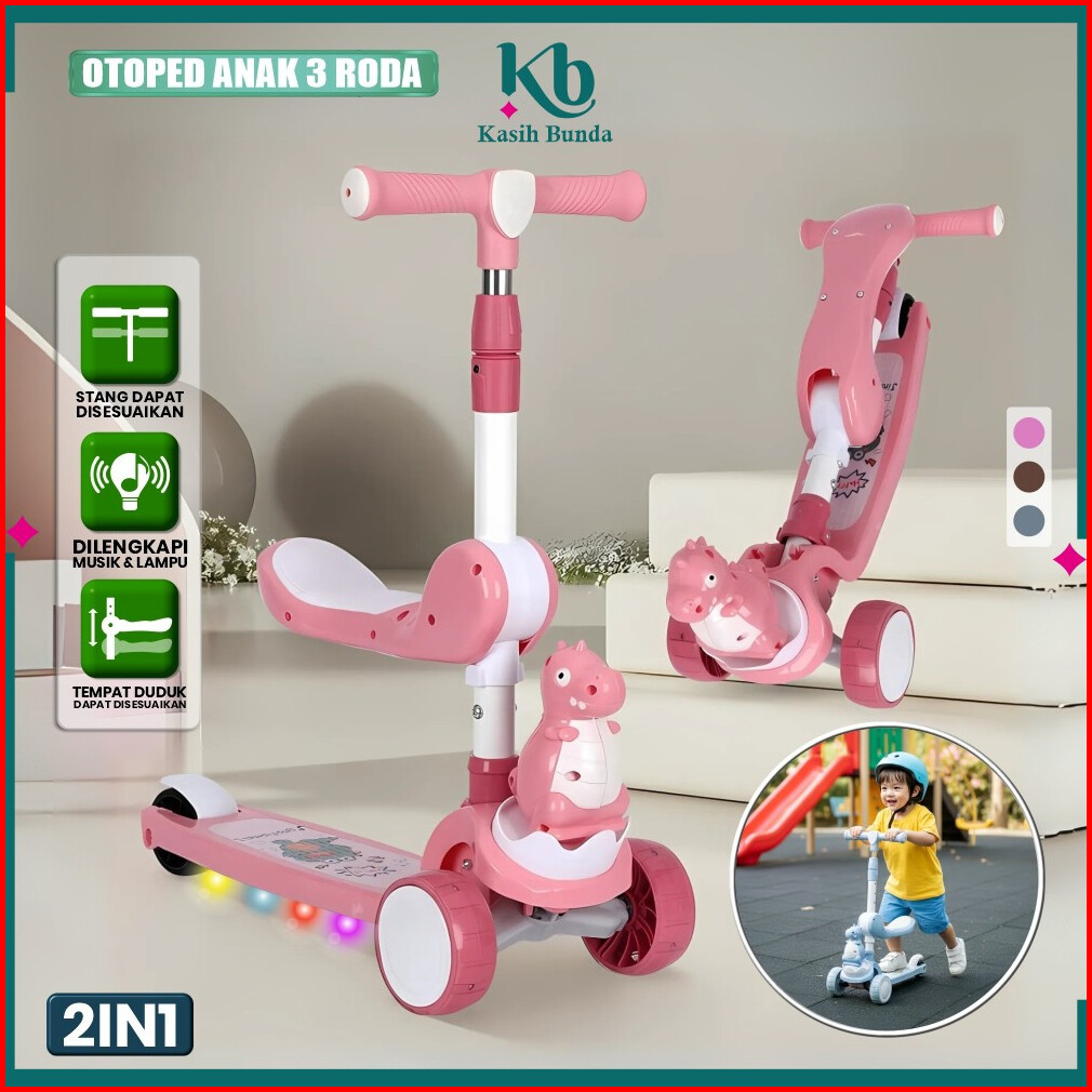 Mainan Skuter Anak 3 Roda Scooter Otoped Bisa Lipat Scooter Anak Multifungsi Ada Musik Lagu Lampu Roda Nyala Bunda M392