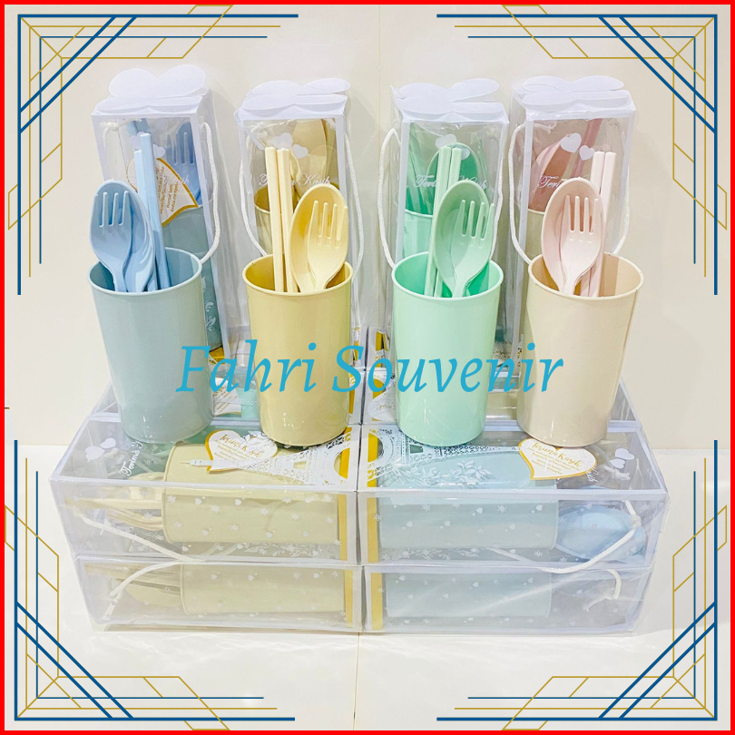 Isi 10 Pcs Souvenir Gelas Plastik Lokal Oval Lurus Sendok Set Lokal Bebek Kemas Mika