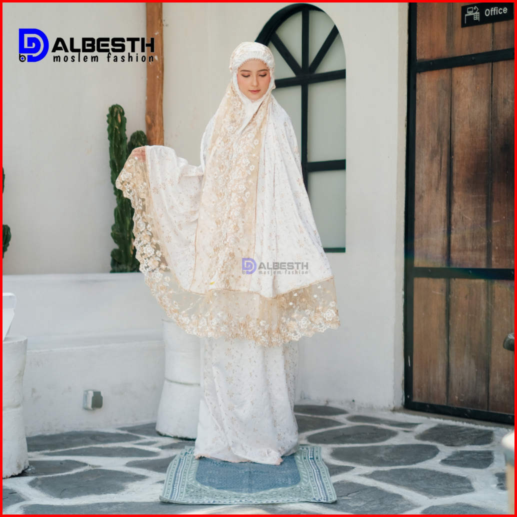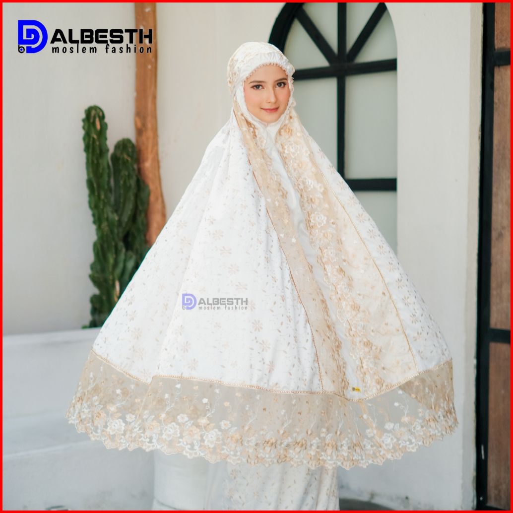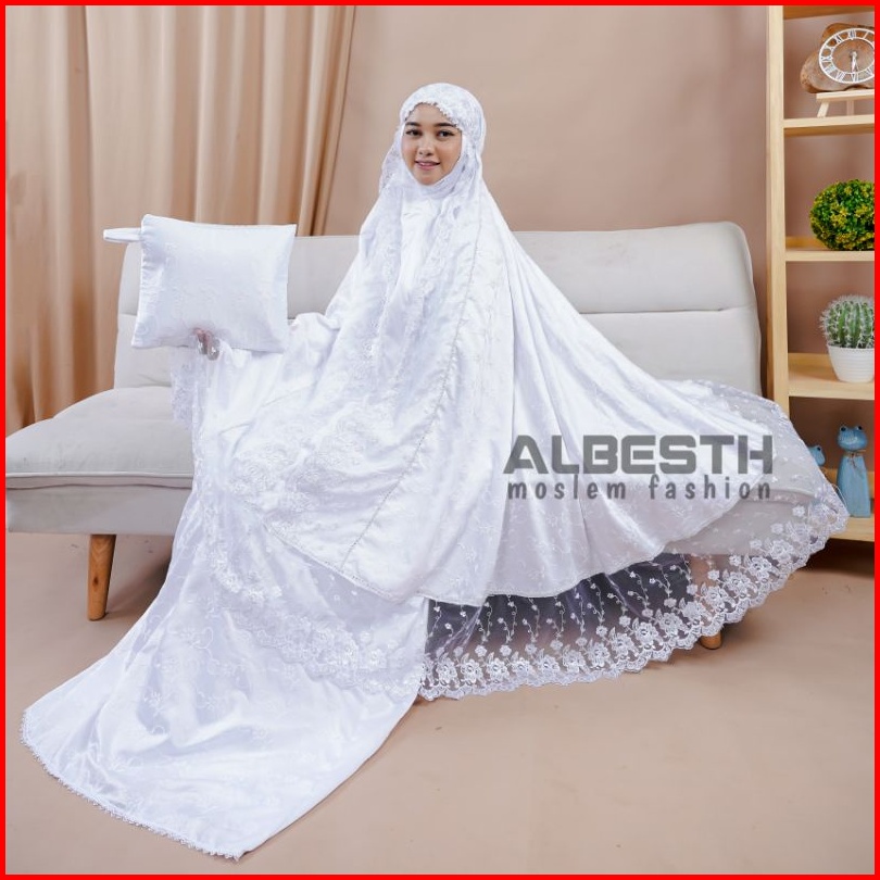 Mukena Dewasa Bordir Mewah Sutra Bunga Renda Tulle Seroja Manik Swarovsky Mukena Terbaru Albesth Moslem Fashion