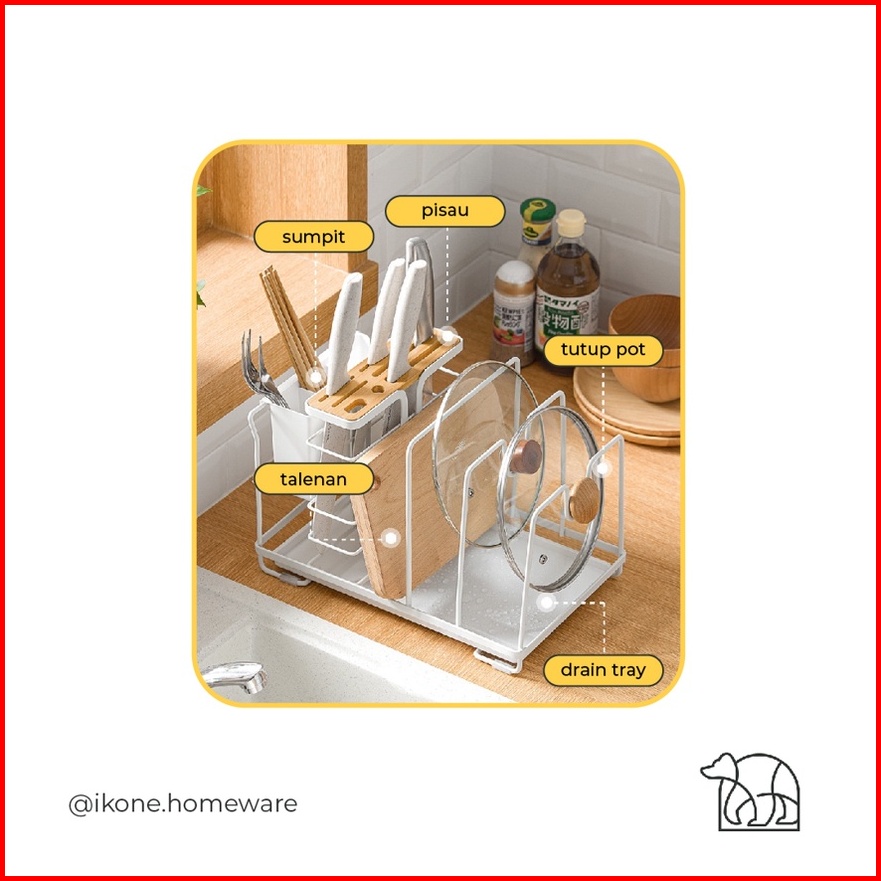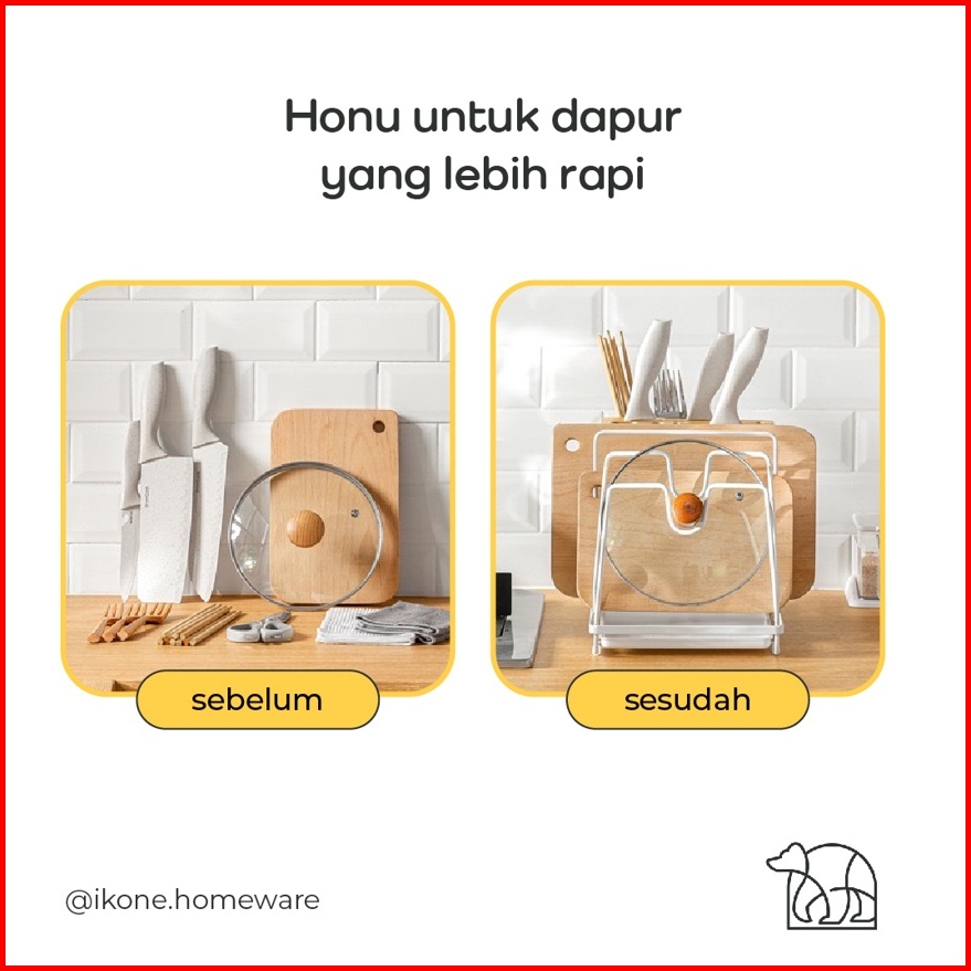 Ikonehonu Rak Peralatan Masak Piring Tutup Panci Dengan Tempat Pisau Atau Telanan Knide And Pan Holder