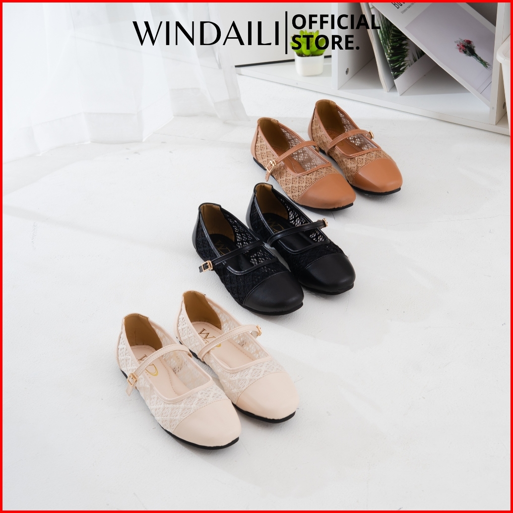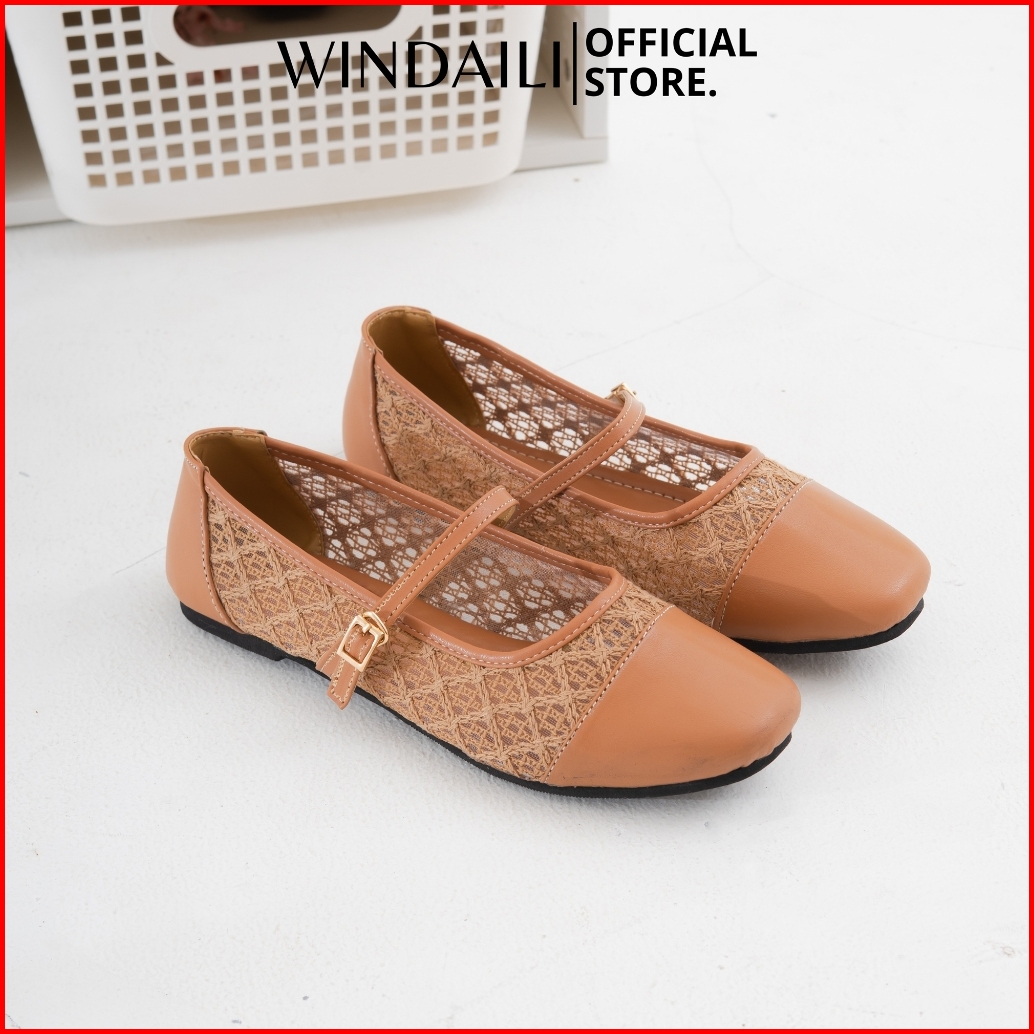Windaili Dresa Sepatu Flatshoes Wanita Gesper Brukat