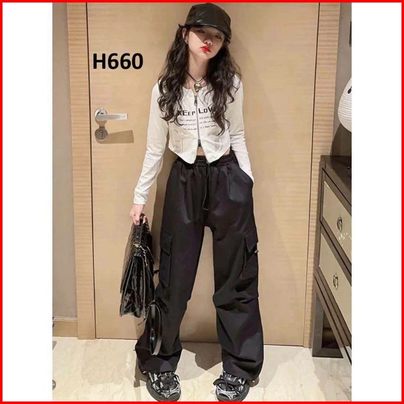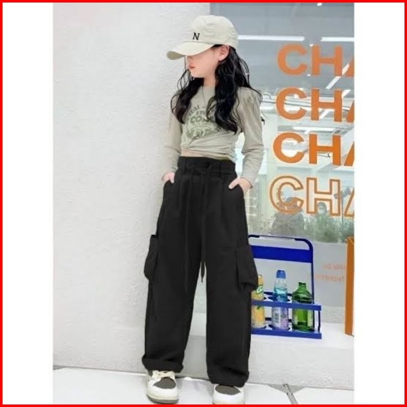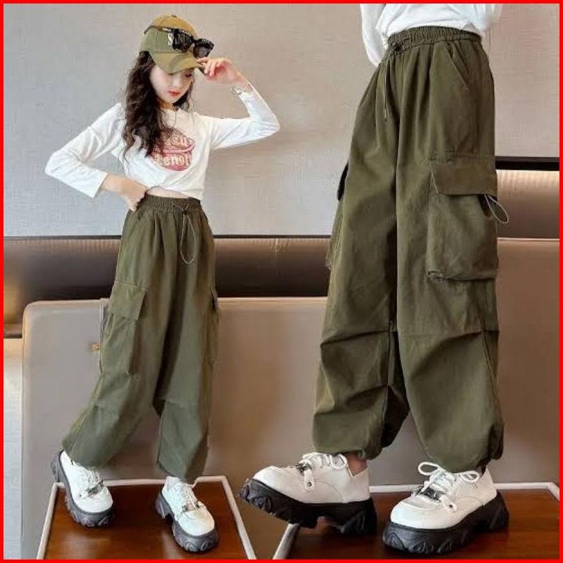 Celana Cargo Anak Cewek Highwaist Loose Pants 6th-13th Bahan Drill Premium