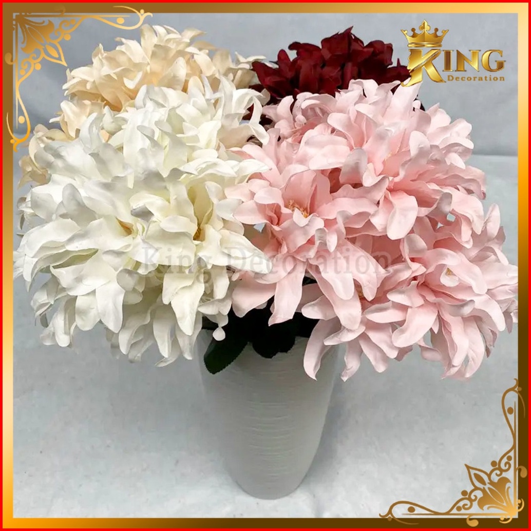 Bunga Dahlia Tangkai Panjang Cabang 3 Artificial Bunga Imitasi Kain Untuk Cafe Kamar Dekorasi Hiasan Rumah Dan Pelaminan