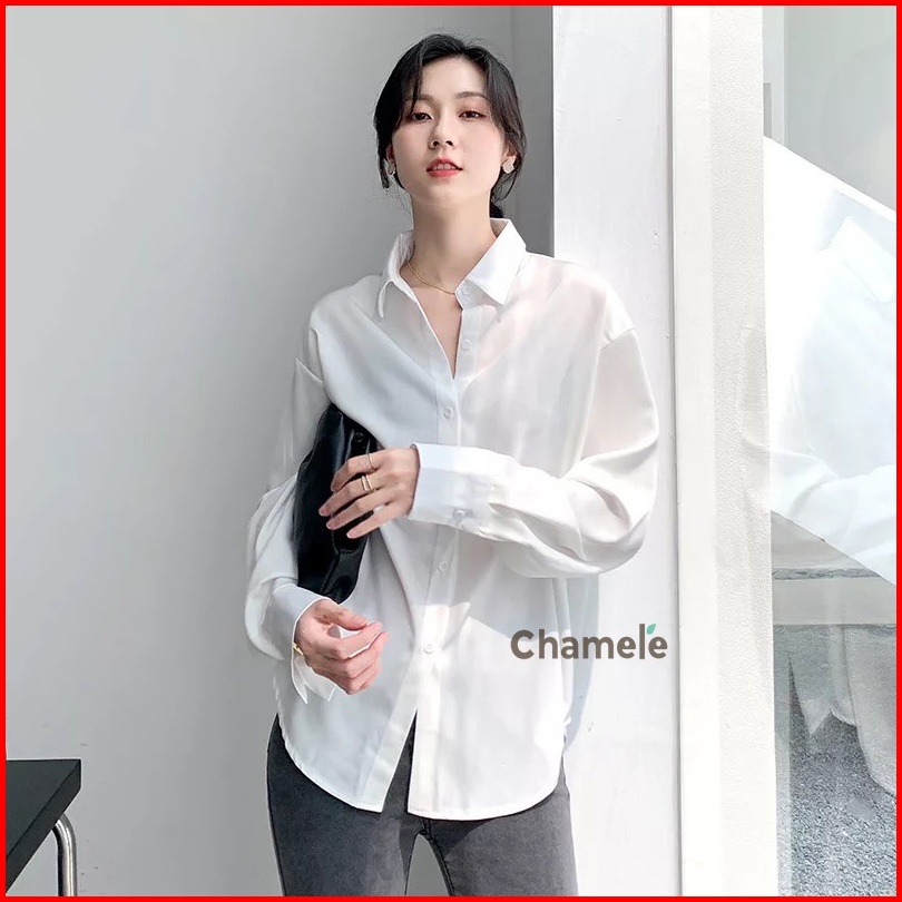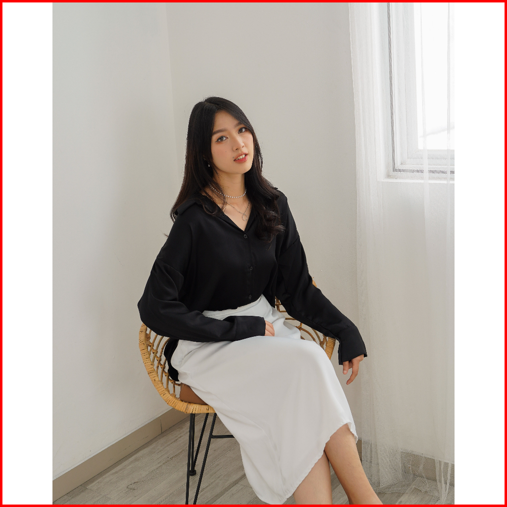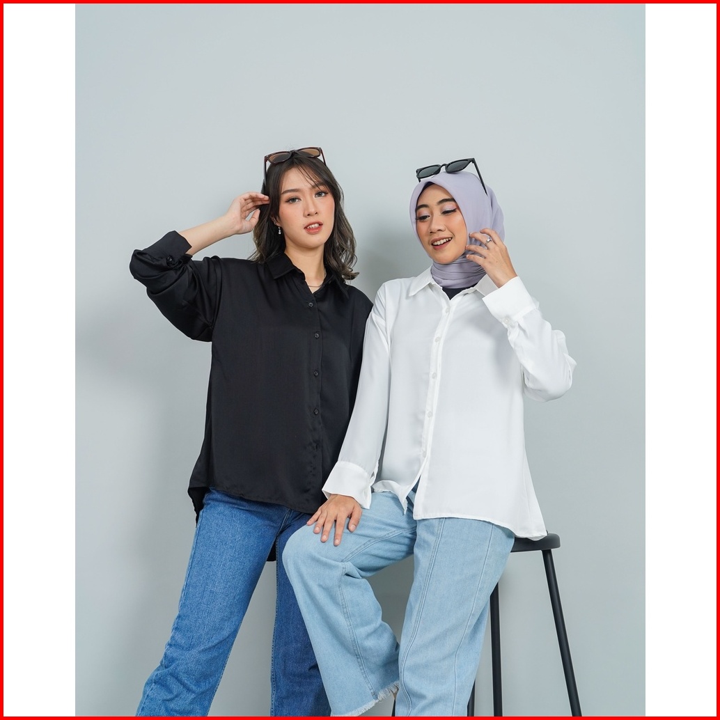 Laura Suade Silk Premium Oversize Top Atasan Ujian Ospek Interview Kemeja Satin Wanita 2597