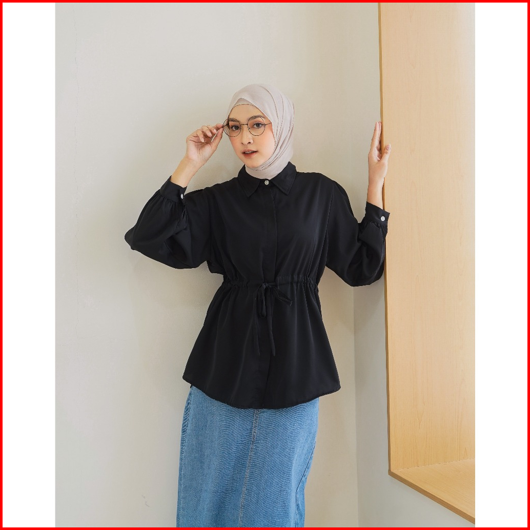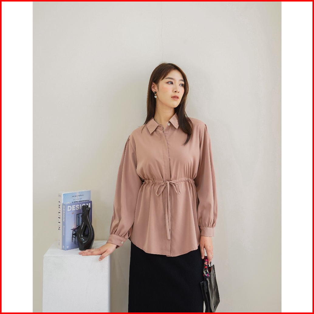Yoona Puff Sleeves Kemeja Shanghai Kerah Kemeja Wanita Ko Moon Young Style 2334 5009