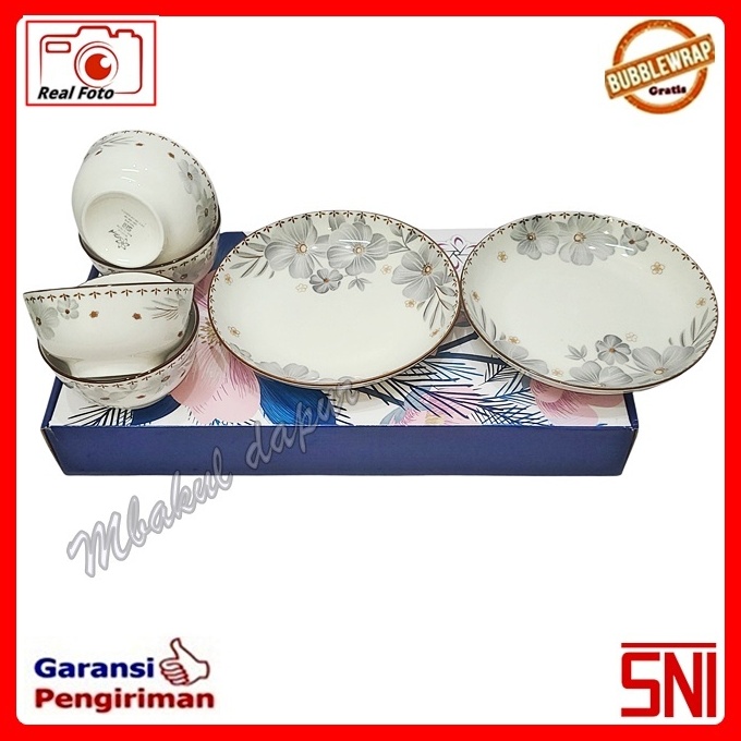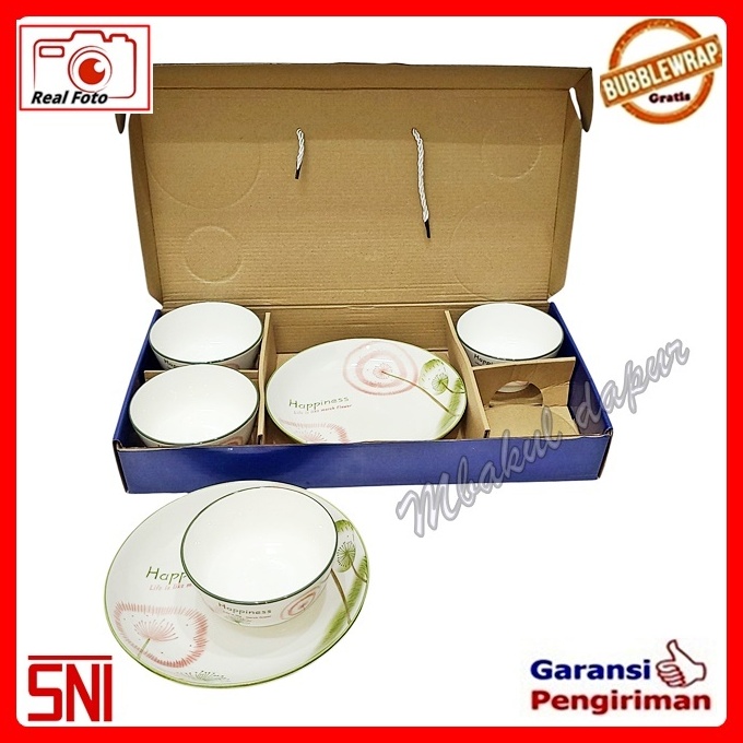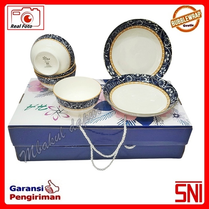 Hampers Set Set Kado Gift Box Keramik Piring 20cm 2pc Mangkok 12cm 4pc Jinjingan Tebal Mewah Sni
