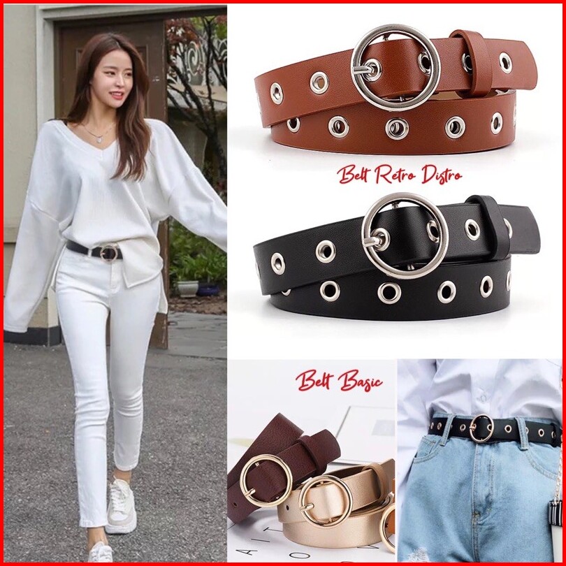 Ikat Ban Pinggang Kulit Wanita Ring Belt Besi Basic Retro Korean Fashion