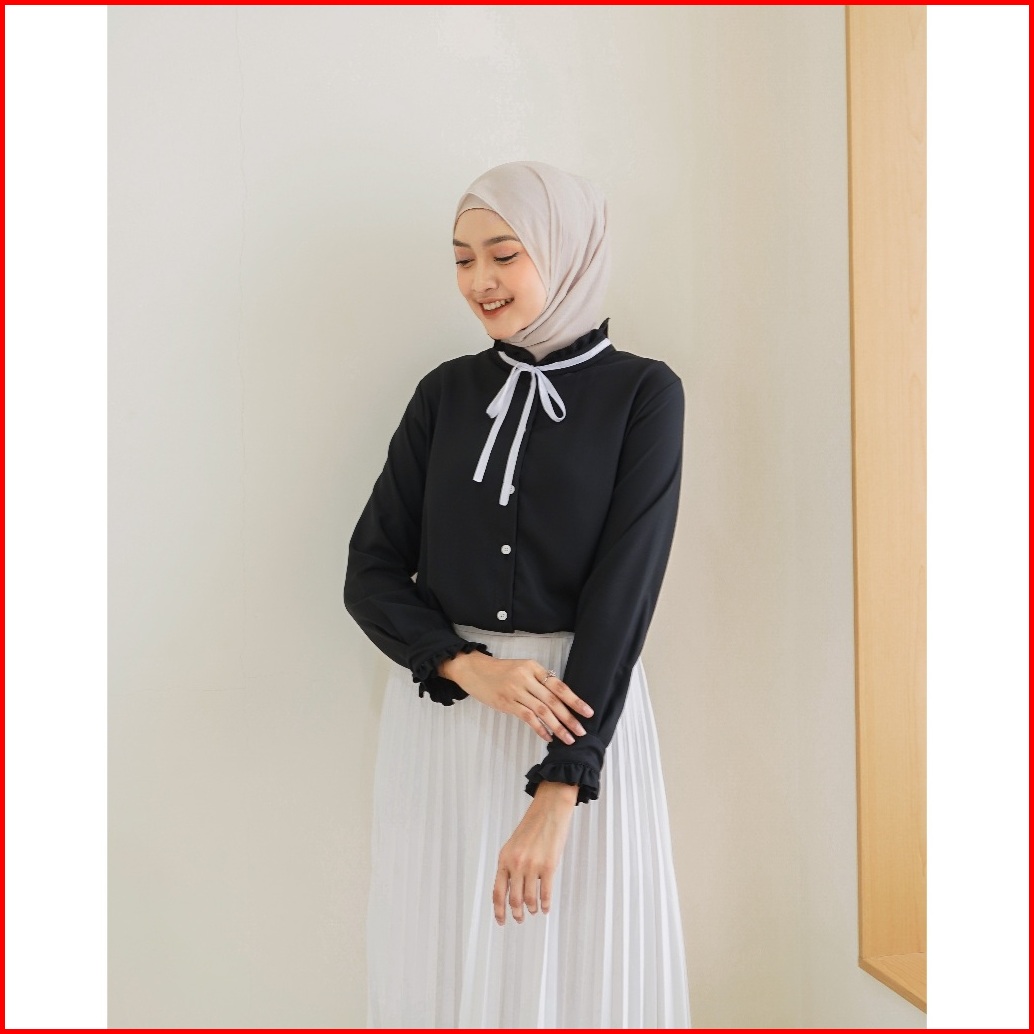 Soo Yun Ruffle Korean Style Baju Kemeja Kantor Natal Wanita 2508