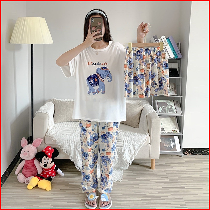 Stl103 Set Piyama Import 3in1 Stelan Baju Tidur Cp Celana Panjang Hp Celana Pendek Wanita